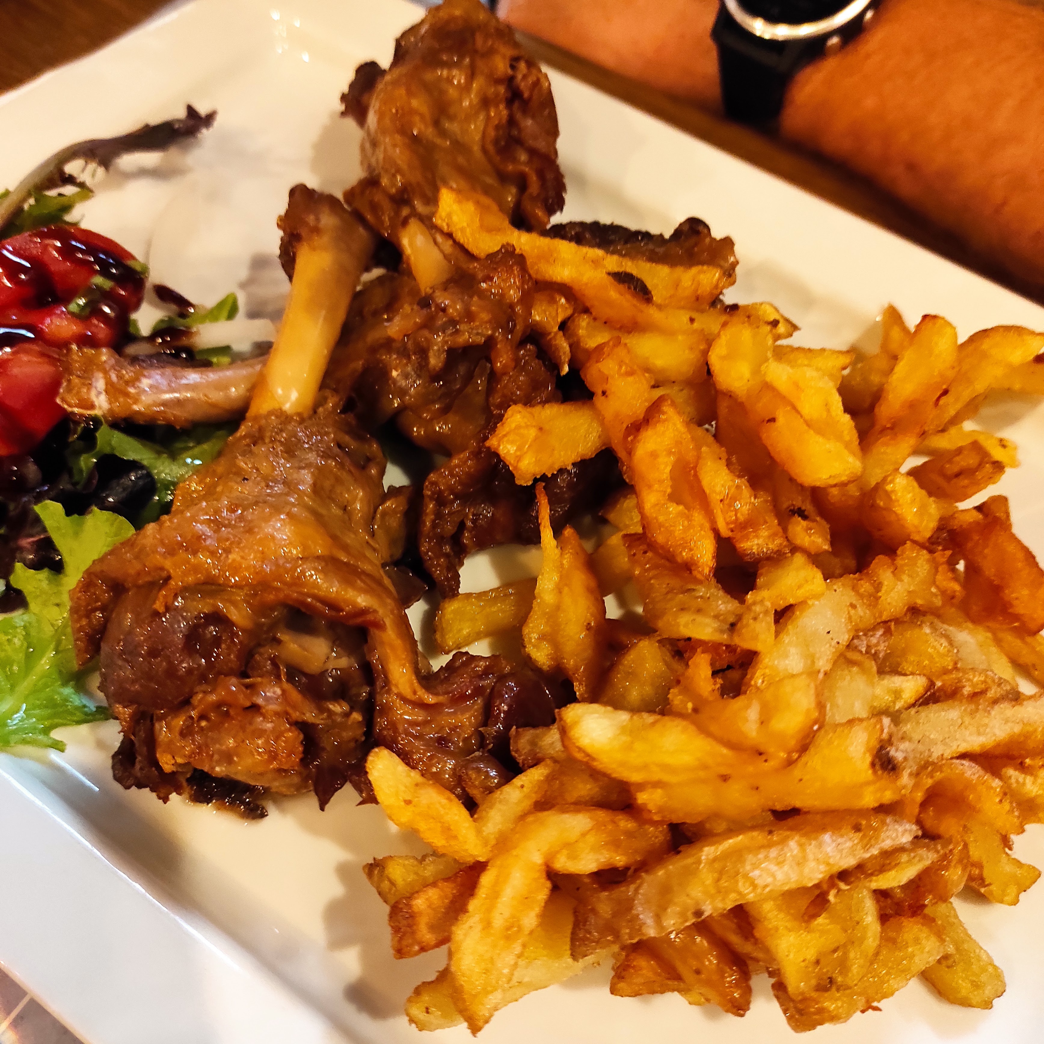 Très bon accueil du personnel. Pensez à réserver, car il y a beaucoup de monde. Pour nous c'était un lundi de marché, et nous sommes arrivés pile poil, juste avant qu'il soit complet ! Nous avons pris le menu qui est très complet, les plats copieux et bons. L'attente entre les plats était normale malgré le monde. Rien à dire de négatif. Si peut être le passage et la queue en caisse pour aller payer son addition. Dommage je n'ai pris en photo que l'entrée, la salade de gésiers. Mais, nous reviendrons dans hésitation.