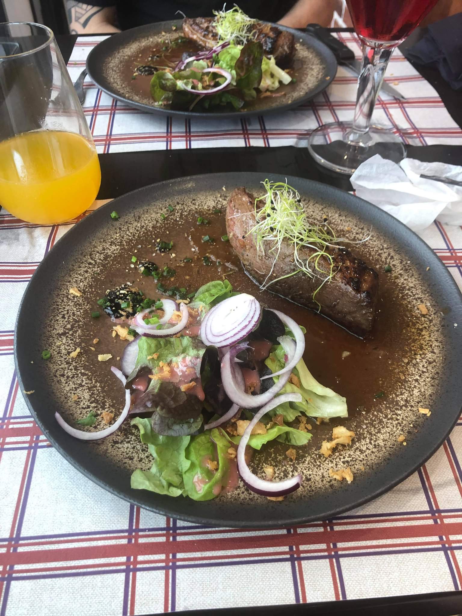 De passage sur Fort-mahon pour la fin de notre petit week end , nous avons fais un saut chez Mélanie et Thibault pour y déjeuner c'était top ! 👍🏻 Salade miel/chèvre chaud Brioche façon pain perdu