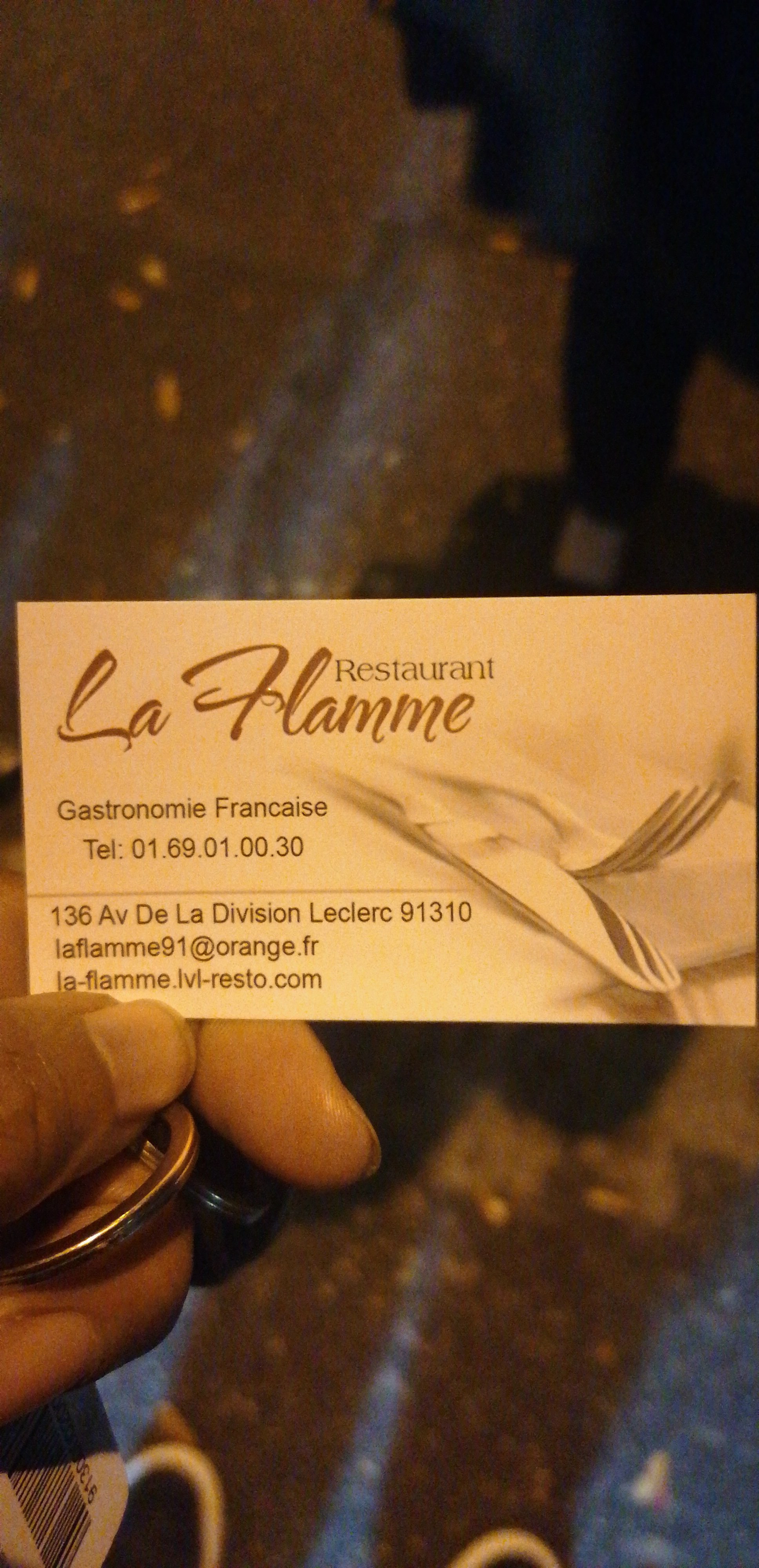 Notre restaurant préféré ayant fermé ses portes nous étions à la recherche d un nouveau restaurant sympa et réalisant une bonne cuisine Ce 13 avril 2024 je crois que nous l avons trouvé : la Flamme à Linas Un accueil chaleureux des serveurs très sympathiques une cuisine excellente tout a été parfait .... et donc nous y reviendront Merci à vous pour ce bon moment passé chez vous R. PRIERE