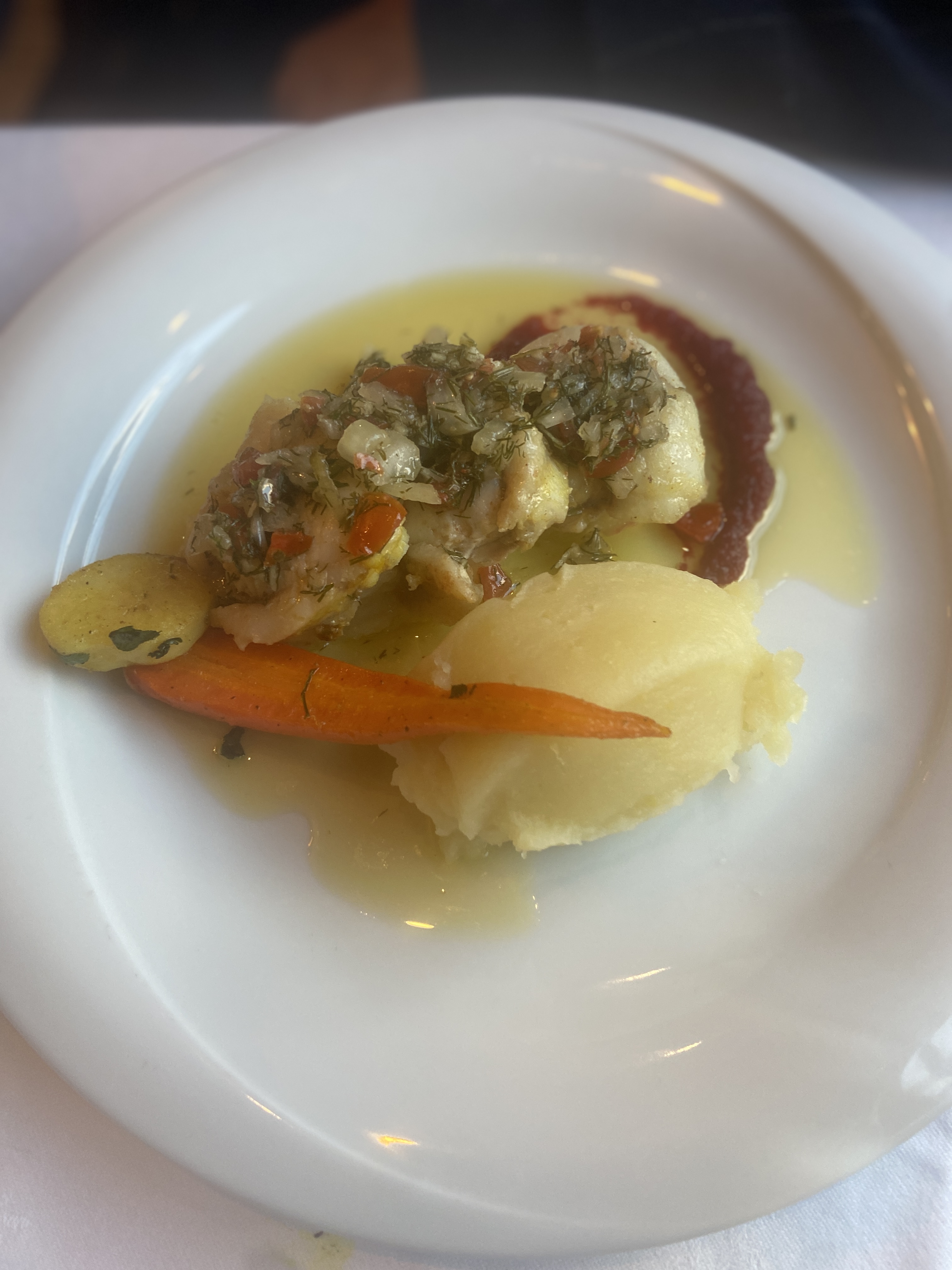 Très bonne expérience. Menu du midi plat plus dessert pour le prix propose est hyper correct. Choix d'un poisson superbement cuit, bon morceau sauce coco citron vert. Un délice. Dessert très bien présenté aussi et de vraiment bonne qualité. A refaire c'est sûre. Rien à dire sur le service non plus. Merci !