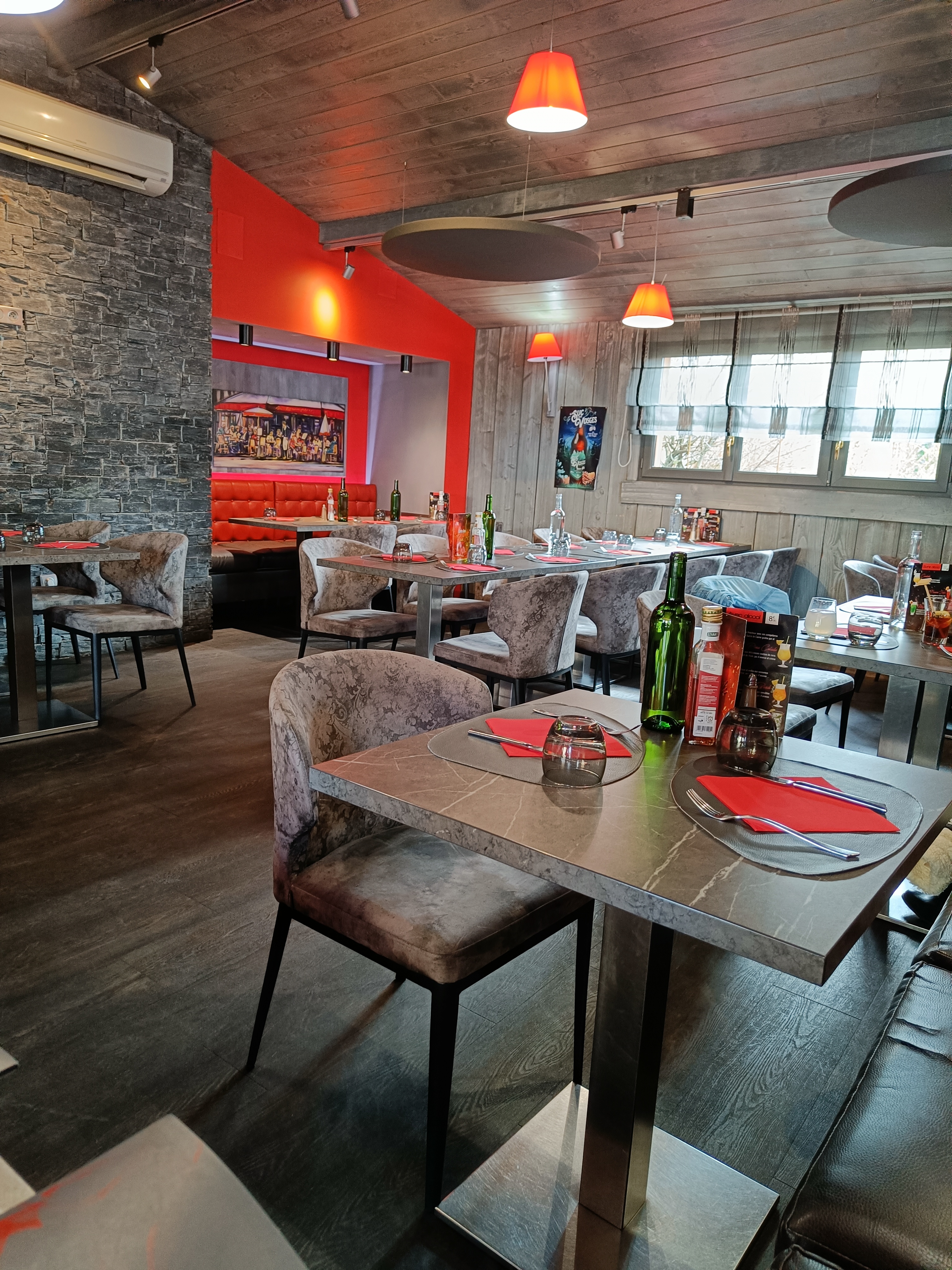 Très beau cadre, ambiance chaleureuse au rendez vous ! Nous avons bien mangé, les pizzas sont bien garnies, les desserts sont copieux. Dommage que certains membres de l'équipe ne respectent pas le port du masque (en dessous du nez, sous le menton même, en salle comme en cuisine !), ça refroidit un peu ! Je sais que c'est dur de le garder surtout dans un lieu où il fait chaud, mais la sécurité avant tout !