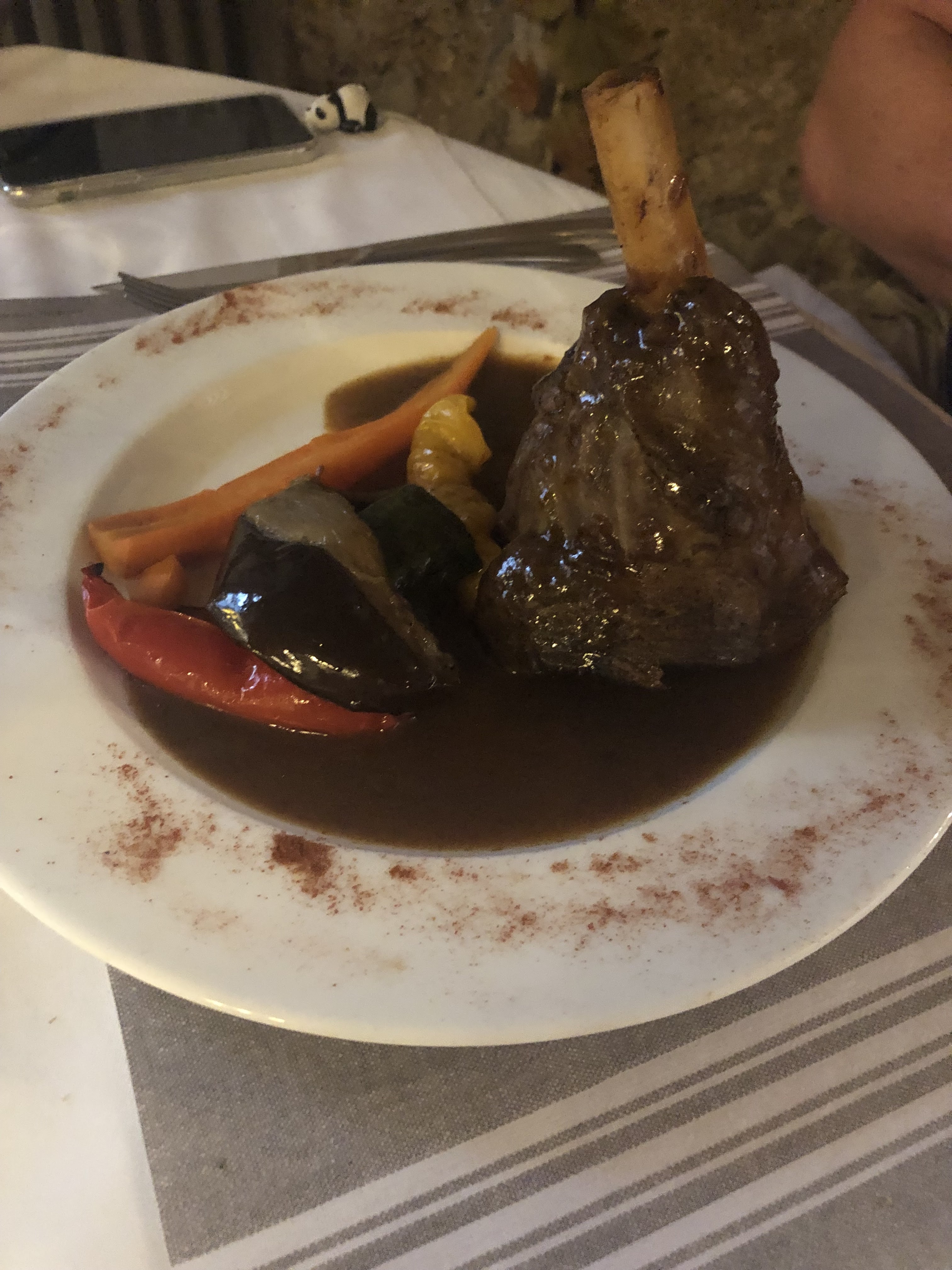 Le repas était excellent, l'agneau très tendre et le service très attentionné et toujours souriant. Meilleur dîner de notre voyage en France, je peux le recommander 👍❤️🇫🇷