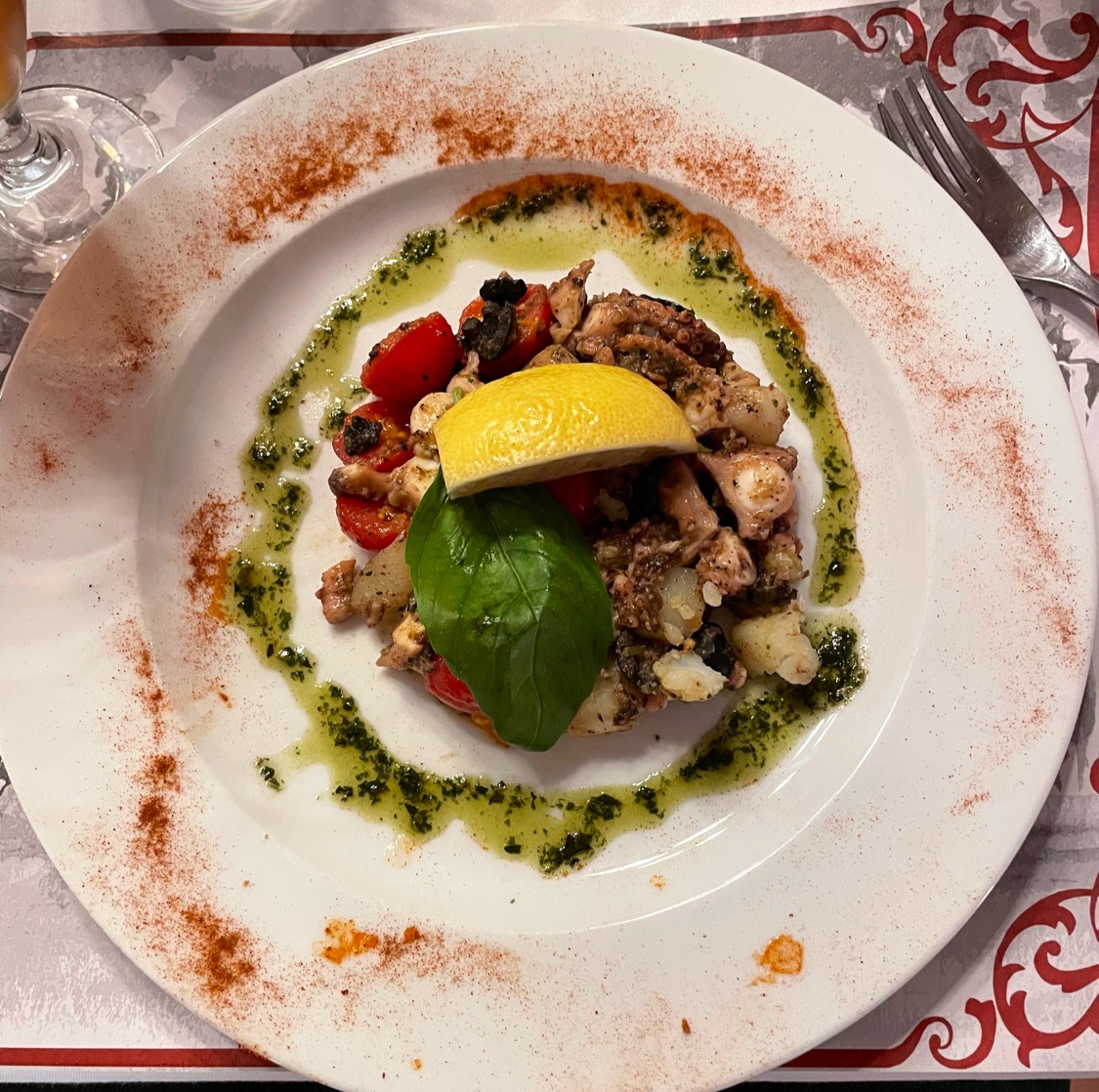 Bon déjeuner! La nourriture est délicieuse, la cuisine est excellente et les ingrédients frais ~ J'adore la salade tiède de poulpe. Les portions sont généreuses et le menu du déjeuner est bon. De plus, l'espace est très agréable dans une grotte en pierre avec beaucoup de lumière et de jolies décorations. Le service est incroyable aussi ! Merci pour ce merveilleux repas :)