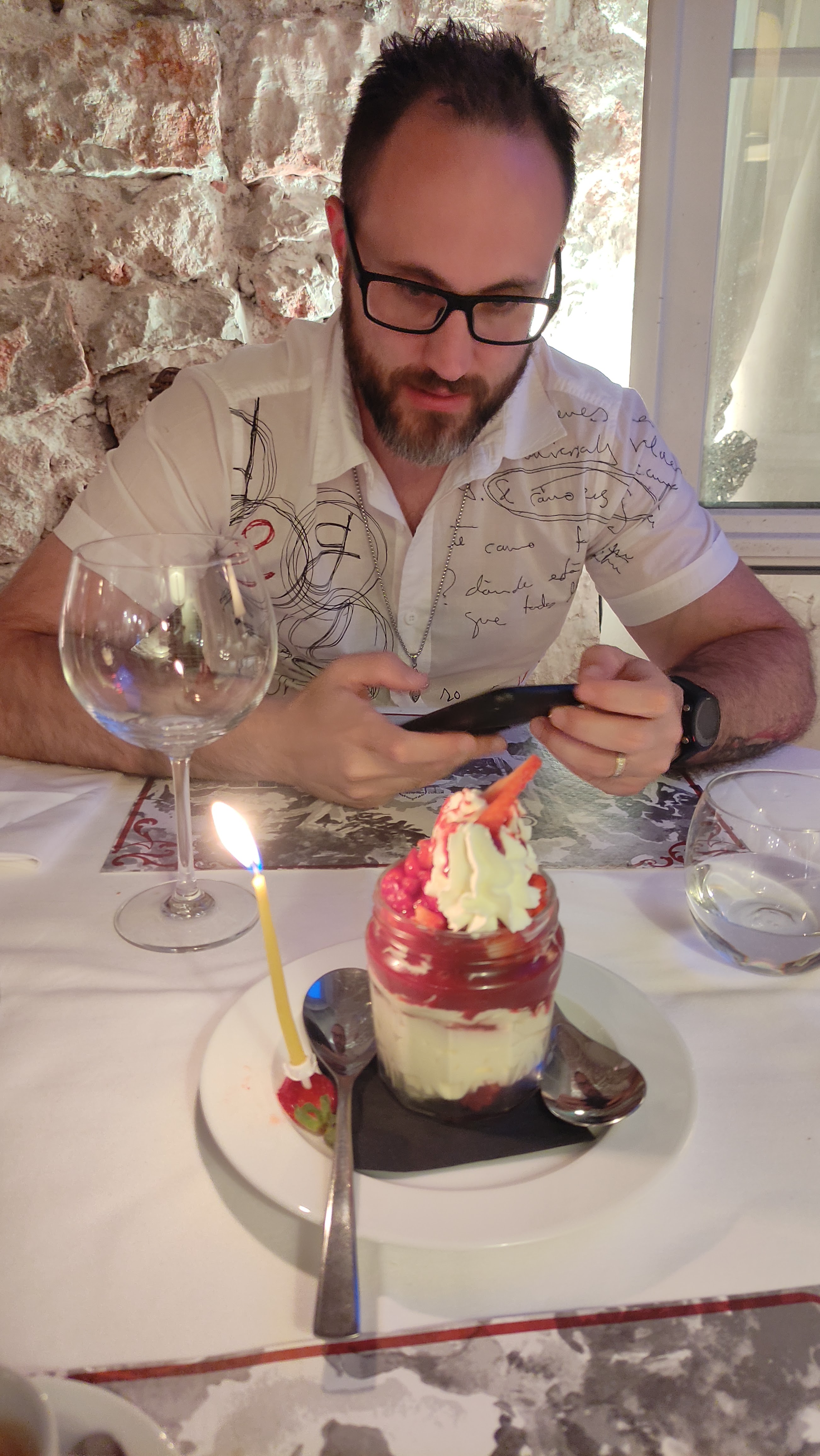 L'un des endroits les plus agréables où nous ayons mangé. Le service était personnalisé et excellent. La nourriture était fantastique. L'endroit est magnifique, murs anciens en pierres apparentes et plafond incurvé. Belle ambiance. Si vous séjournez à Grasse, cet endroit est un régal et ne doit pas être manqué....! Mon merveilleux partenaire a adoré son anniversaire ici !