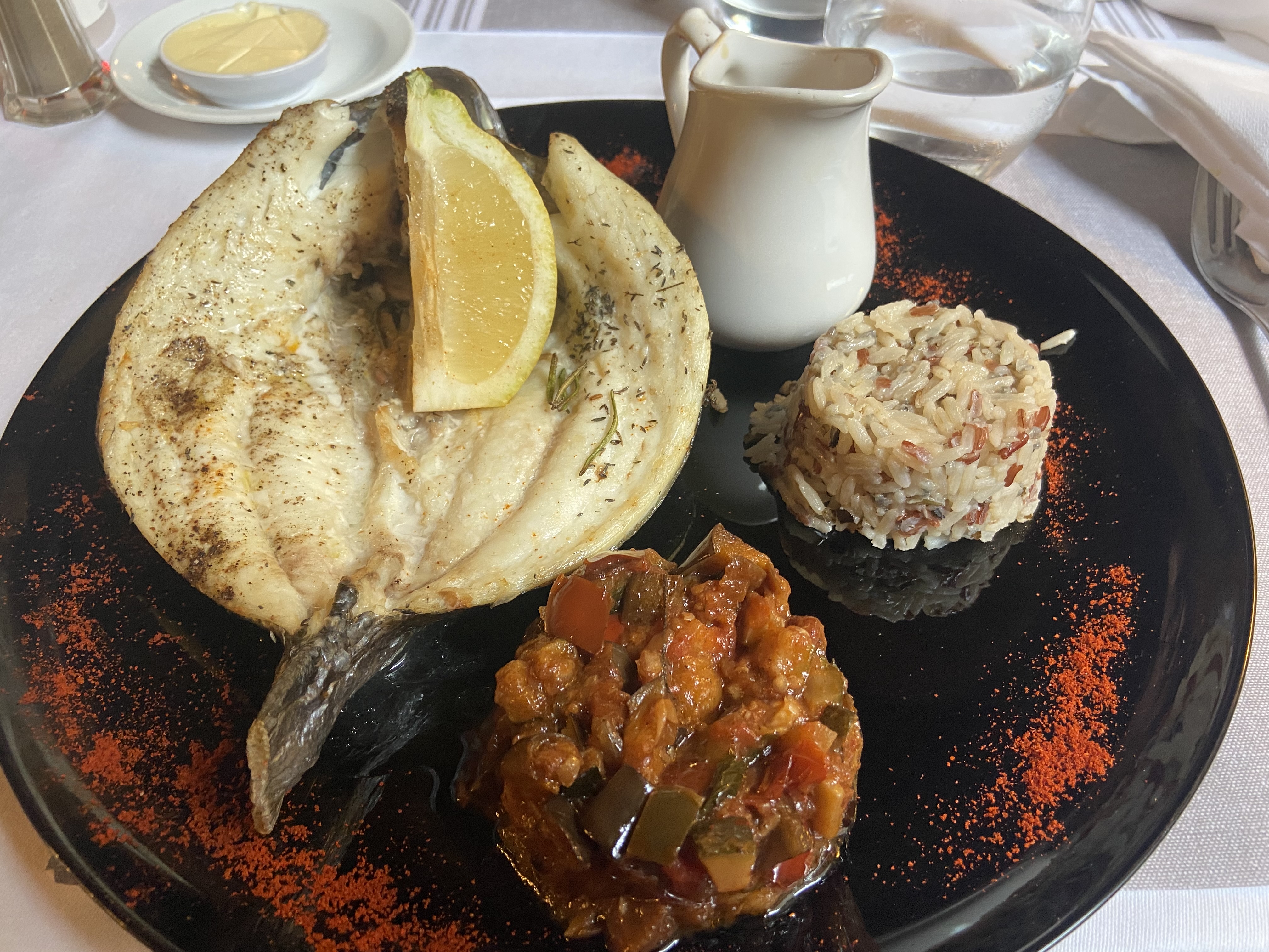 Une multitude de saveurs dans les plats accompagné d´un excellent rosé Leos. Un service attentionné dans un magnifique endroit. Bref une belle et bonne soirée.