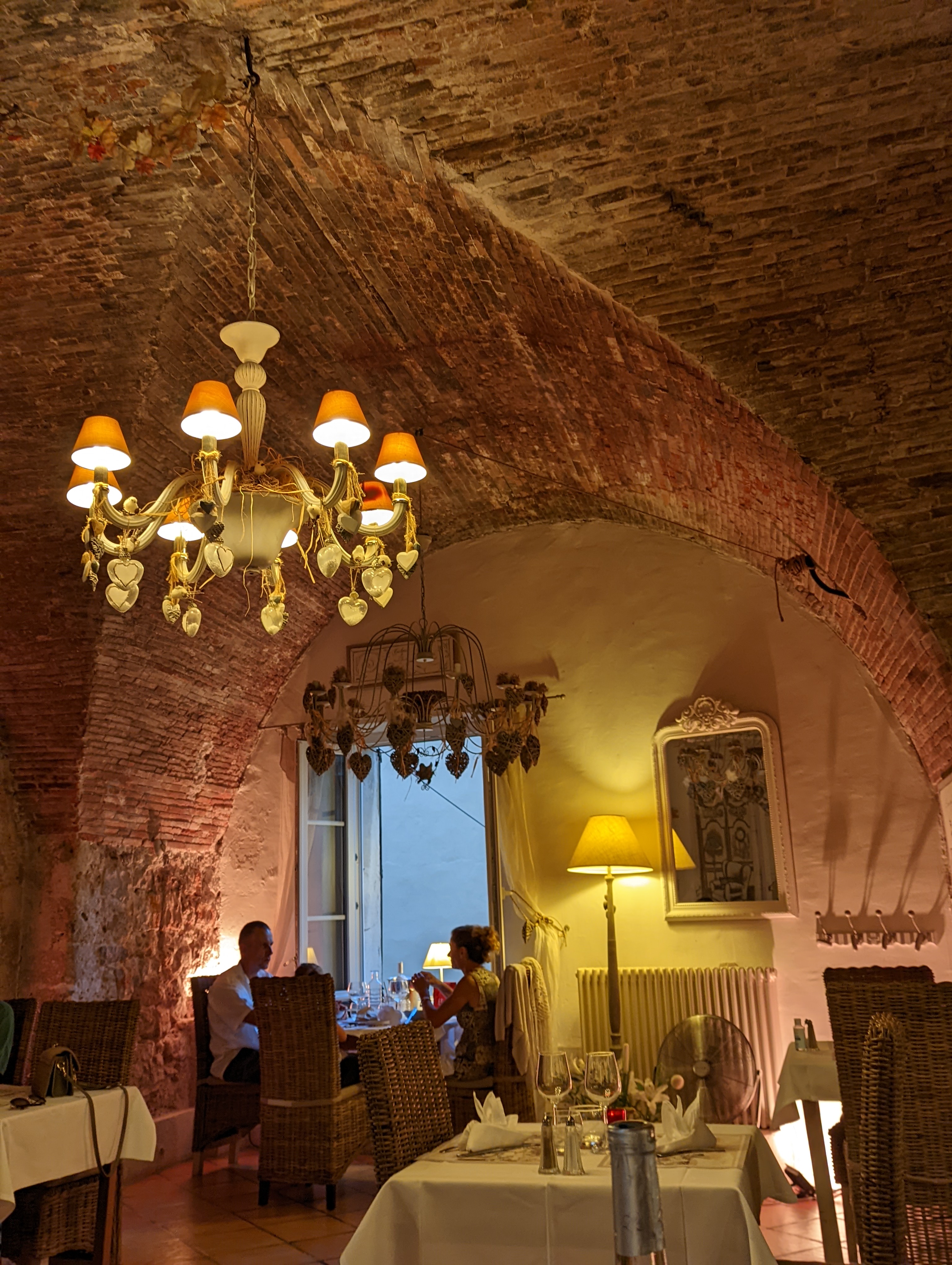 Un toit vouté magnifique et une déco au top pour une ambiance romantique. Les assiettes sont belles et bien exécutées tout ça pour un très bon rapport qualité prix . Nous n'avons jamais été déçu !