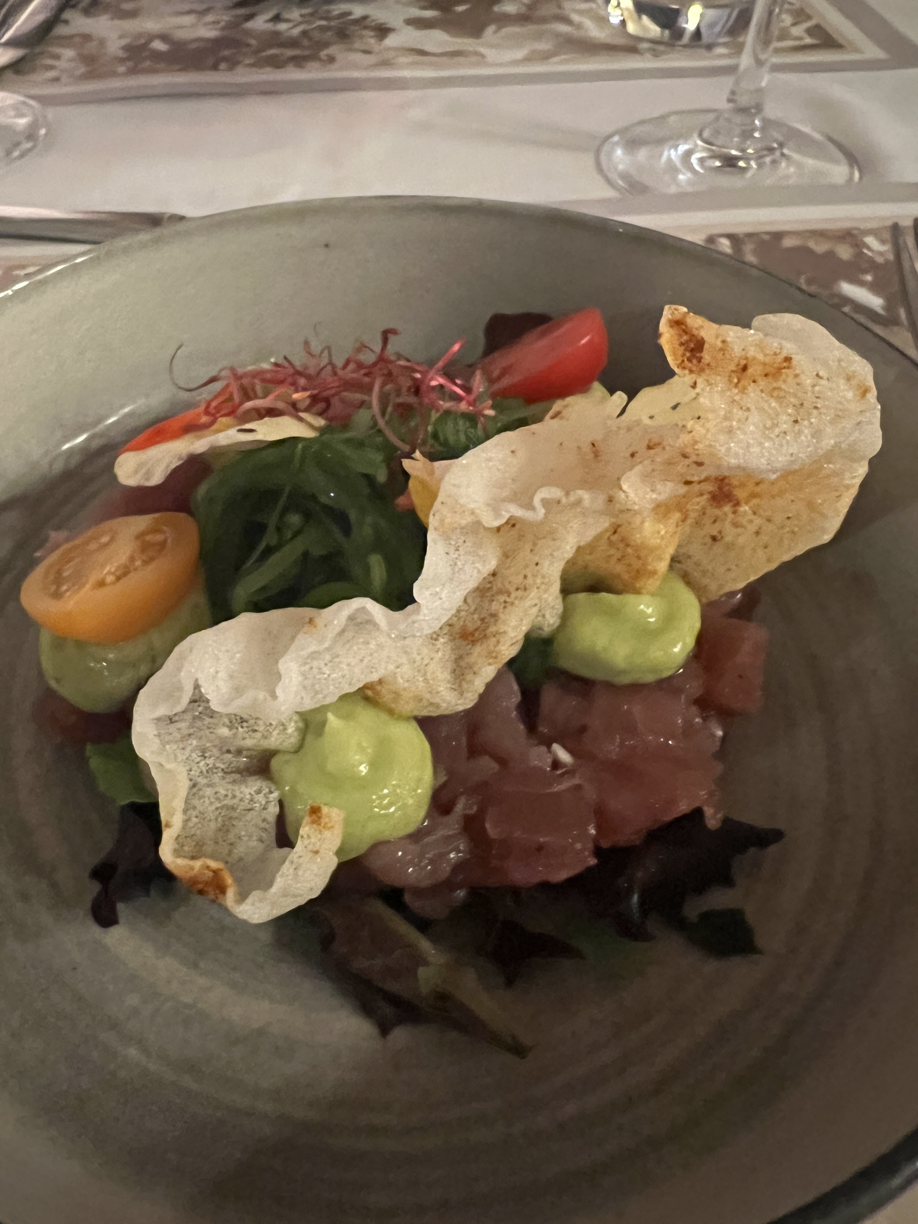 Un petit dîner en amoureux, restaurant trouvé par hasard, choisi par ses notes et commentaires. 1) déco charmante à souhait 2) accueil sympa par le jeune nouveau propriétaire 3) carte restreinte mais gage de produits frais, et là c’est la claque gustatives bravo au chef. Un tartare de thon pour moi, magnifié par une sauce à l’avocat : de la couleur, du goût, de la texture. Un sans faute. Une belle burrata avec un pesto et un arc en ciel de tomate…Très gourmand. Un magret de canard sur un lit de tartare de champignons : je ne connaissais pas, superbe découverte, une bonne cuisson respectée et encore une superbe sauce… Poisson et ratatouille pour madame : une superbe présentation et un assaisonnement irréprochable. Le côté sucré n’est pas en reste: la meilleure crème brûlée de ma vie, avec un truc tout simple en plus que je vous révélerai pas pour ne pas gâcher la découverte. J’allais oublier, de petits amuse bouche en guise de bienvenue et qui donne le ton. Bref foncez !!! Thank you, see you soon 😜