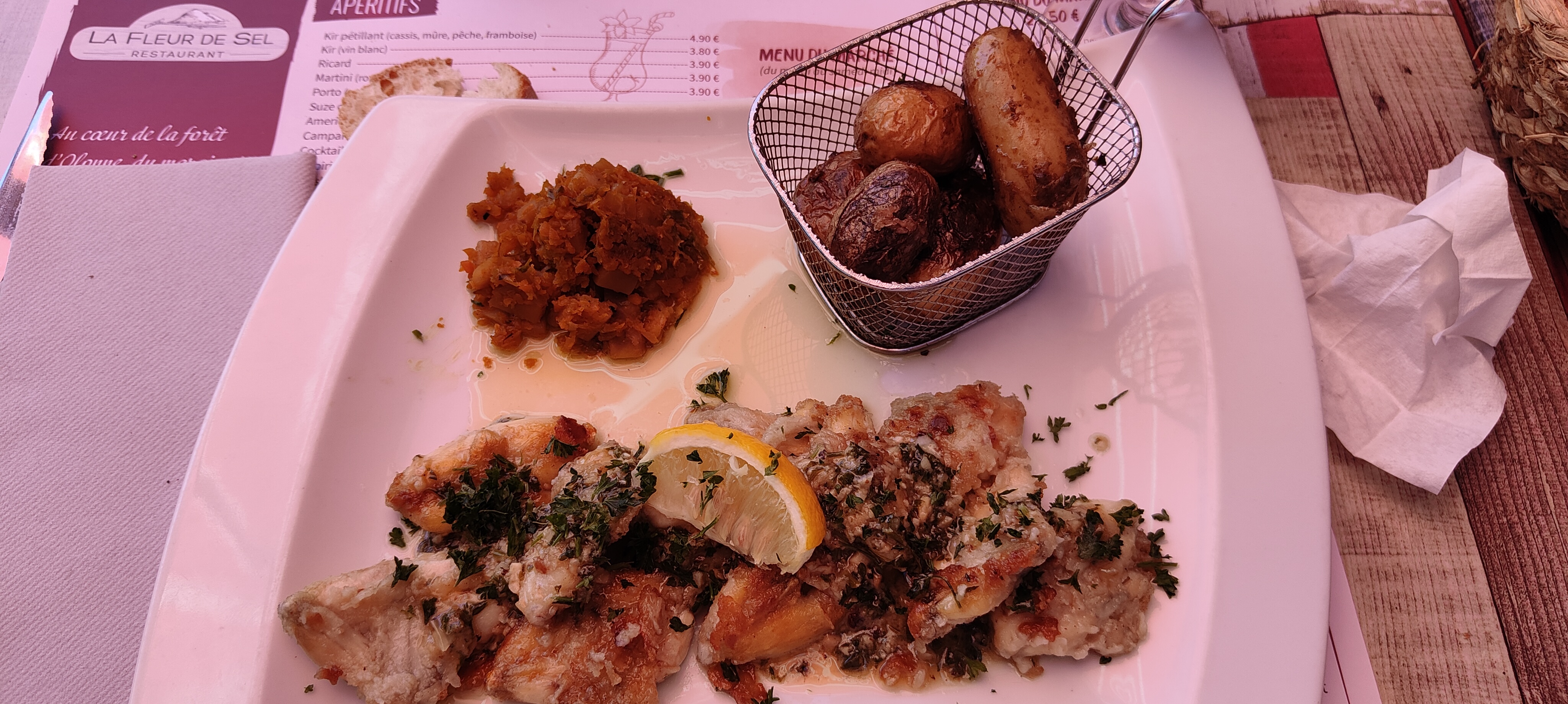La fleur de sel anciennement le marais. Joli cadre très bonne table. Prix très corrects. Bonne quantité dans l assiette. Nous avions pris le menu à 27.50 cuisses de grenouilles cassolette d écrevisses filet de bar un regal. Produits très frais. Service impeccable.
