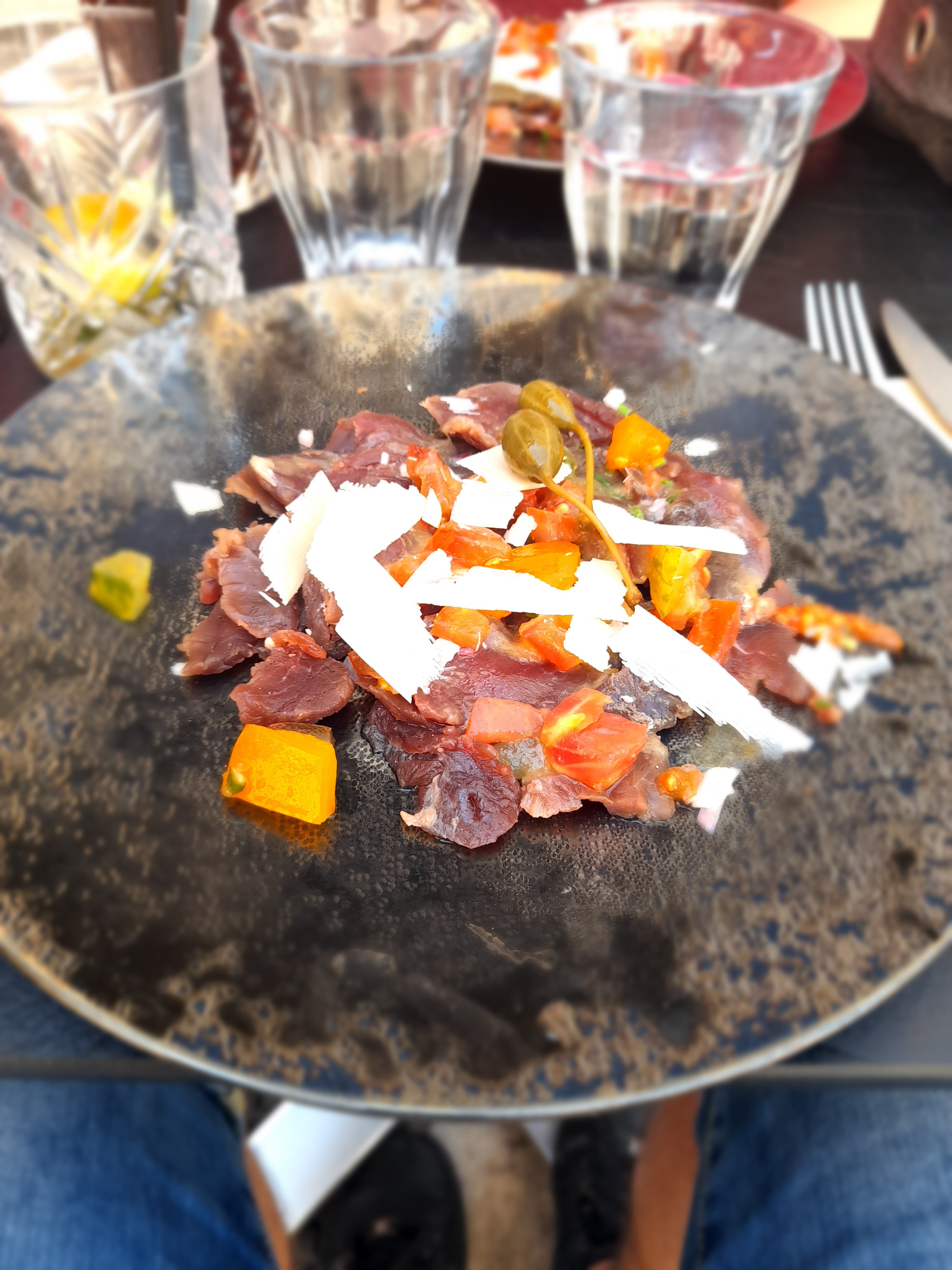 Un assez bon restaurant en termes de nourriture, de service et de prix. Le menu est vraiment raisonnable et le service à la fois rapide et sympathique. La seule déception en termes de nourriture a probablement été le carpaccio de bœuf (photo), qui n'avait pas beaucoup de saveur. Les pâtes aux crevettes, le filet de porc, le gâteau au rhum et la glace/mousse au caramel étaient délicieux.