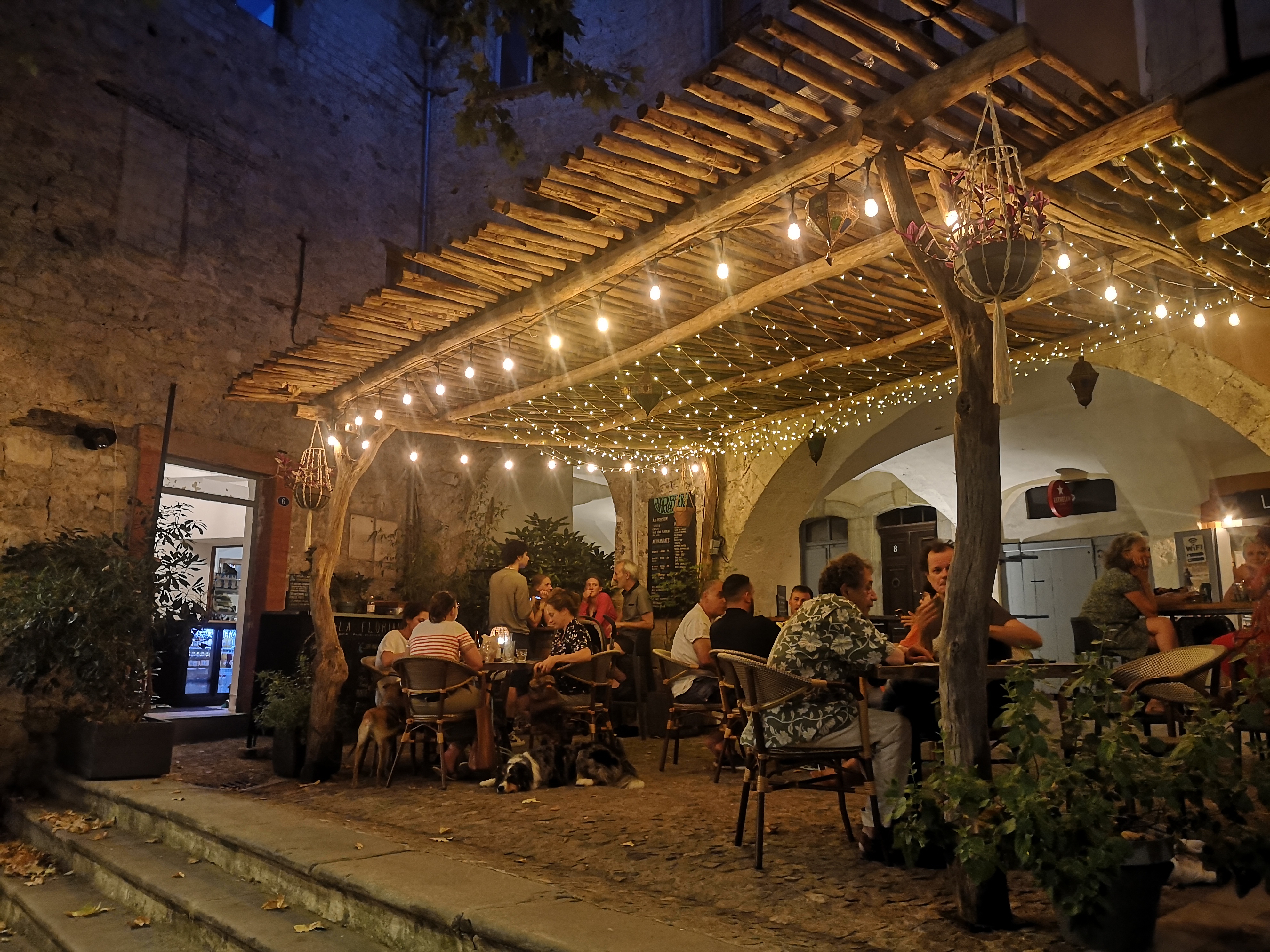 Un lieu super, un cadre médiéval, un service au top! Et une terrasse au top matin, midi et soir!