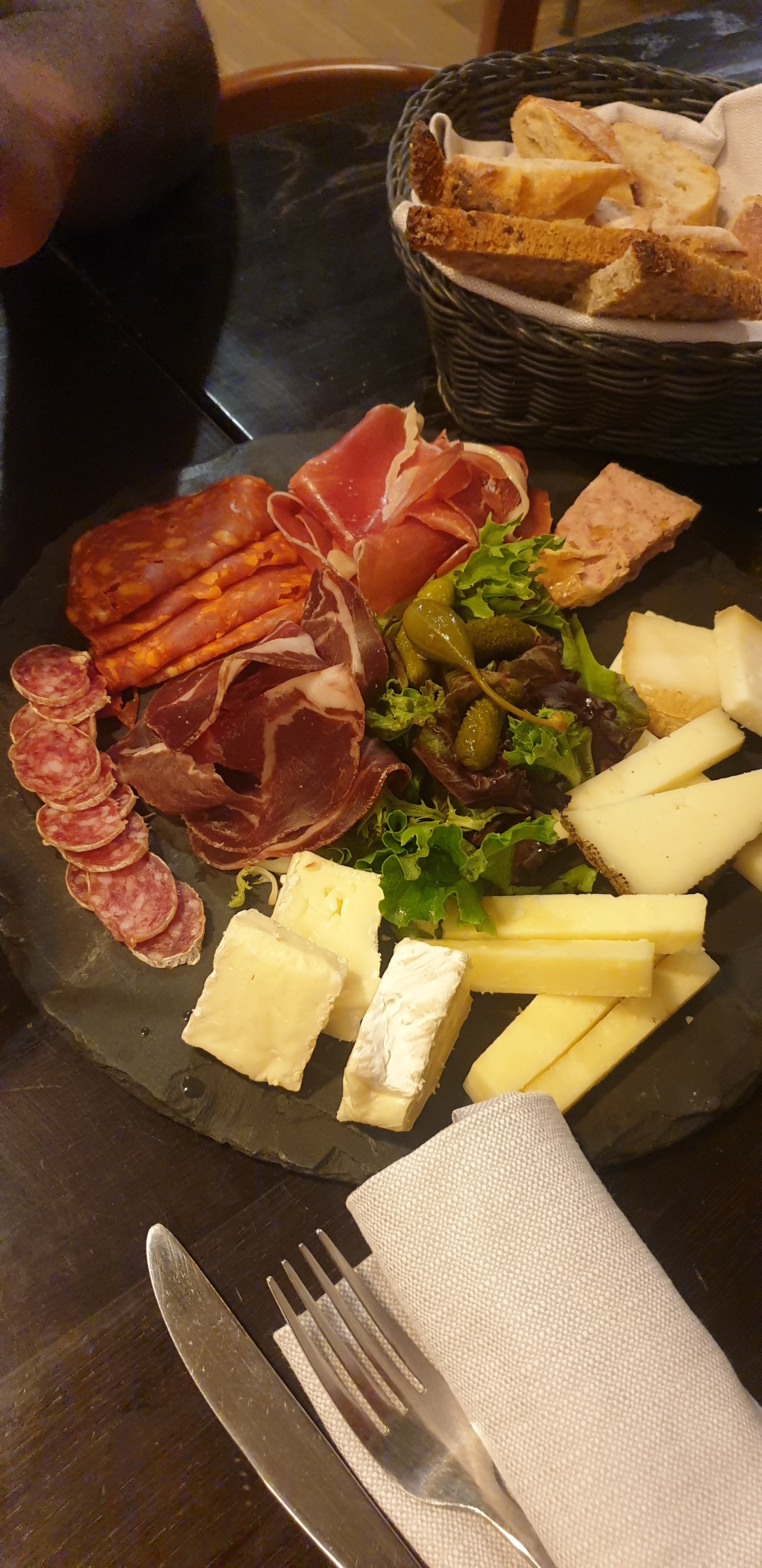 Cadre sympa, mais la grande planche à partager à 22euros ne les vaut pas. 3 bouts de jambons et 2 morceaux de fromage de mauvaise qualité.