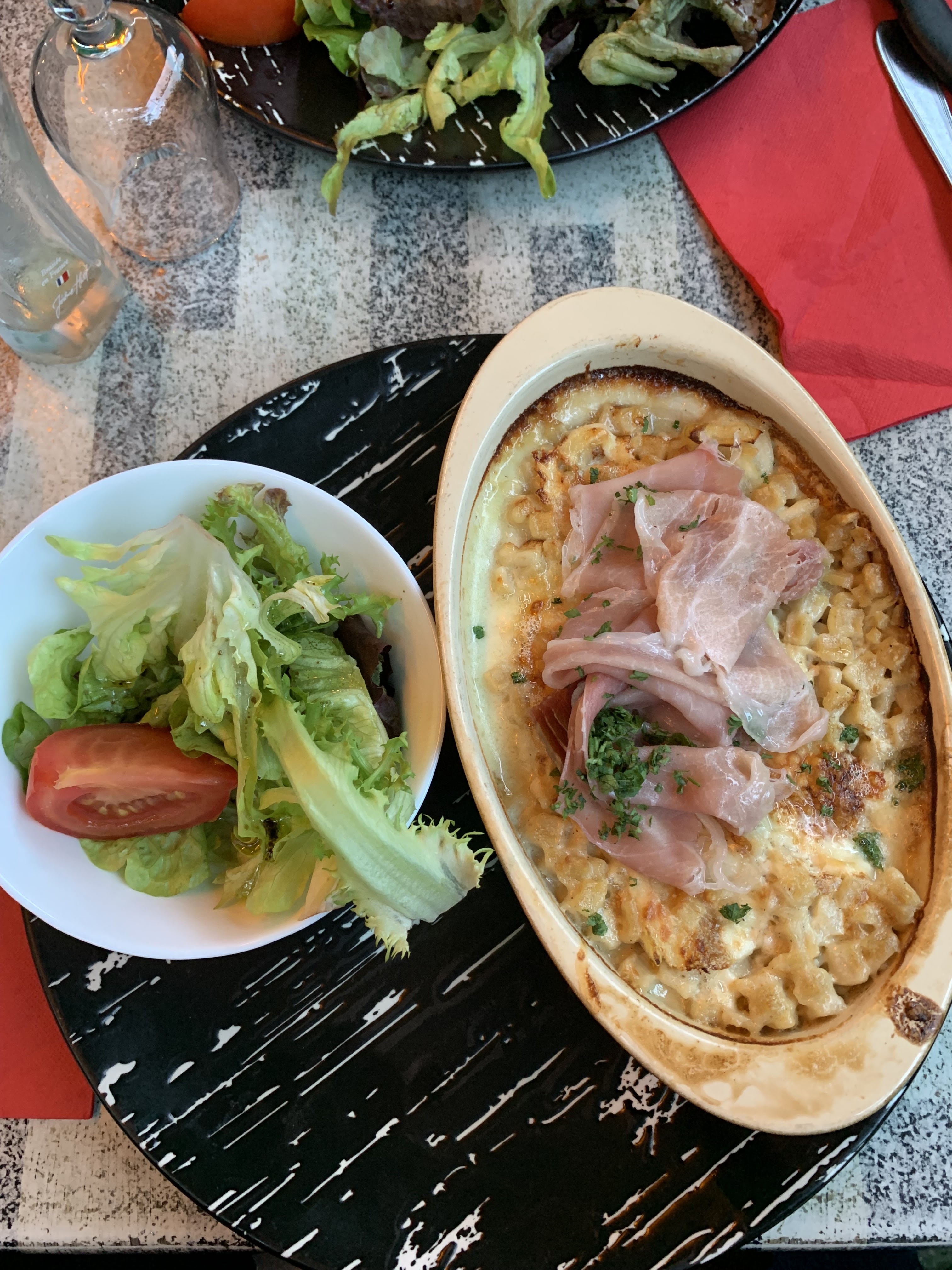 Le restaurant venait de ré-ouvrir, donc normal que l'on ait des plats manquants à 13h. J'ai pris une fondue savoyarde basique, bonne, je retournerai plus tard pour tester le reste de la carte.