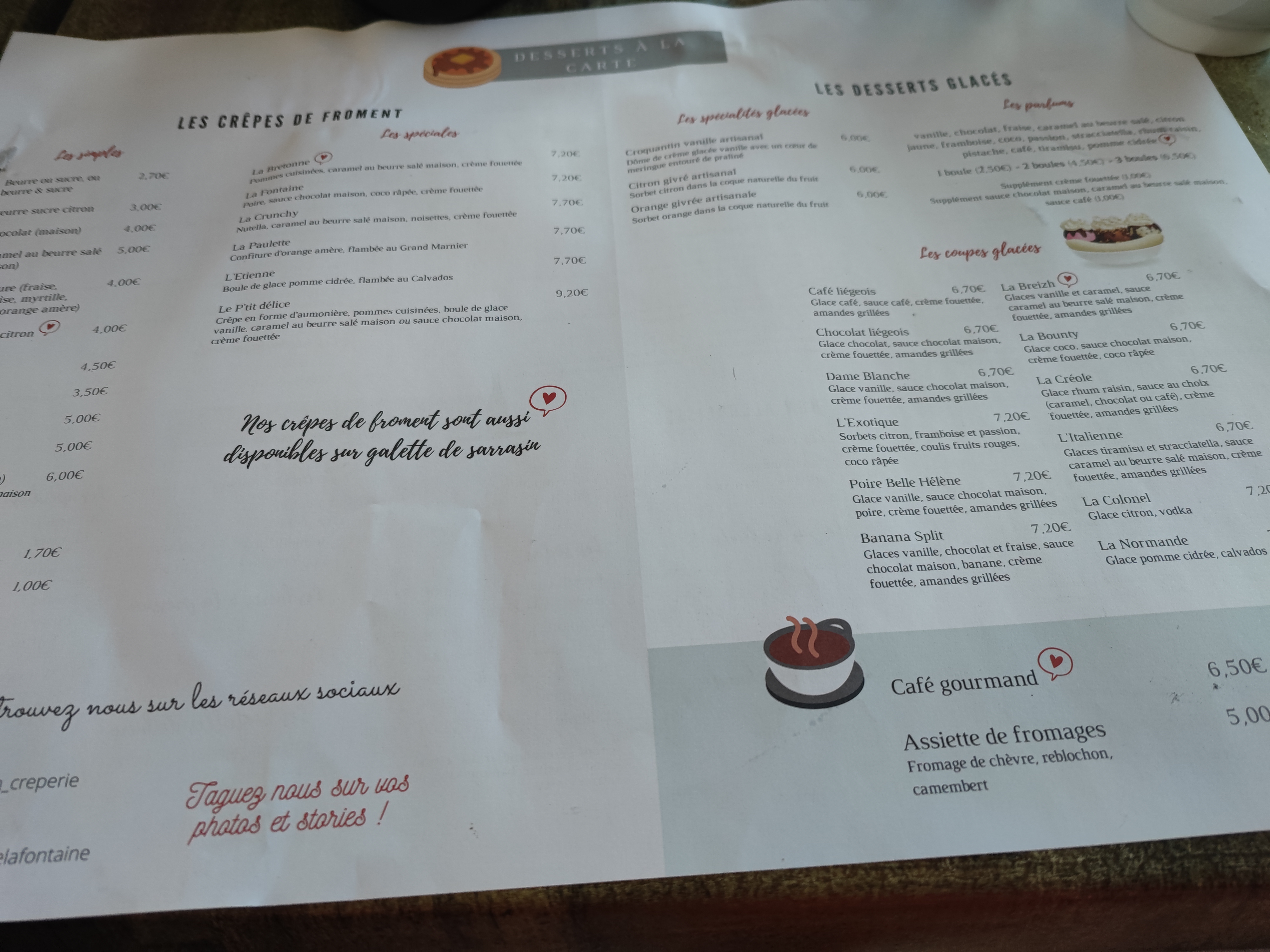 Je recommande la Fontaine, super crêperie, les crêpes sont délicieuses avec un vrai coup de cœur pour la Végétarienne. Ambiance sympa et accueil chaleureux