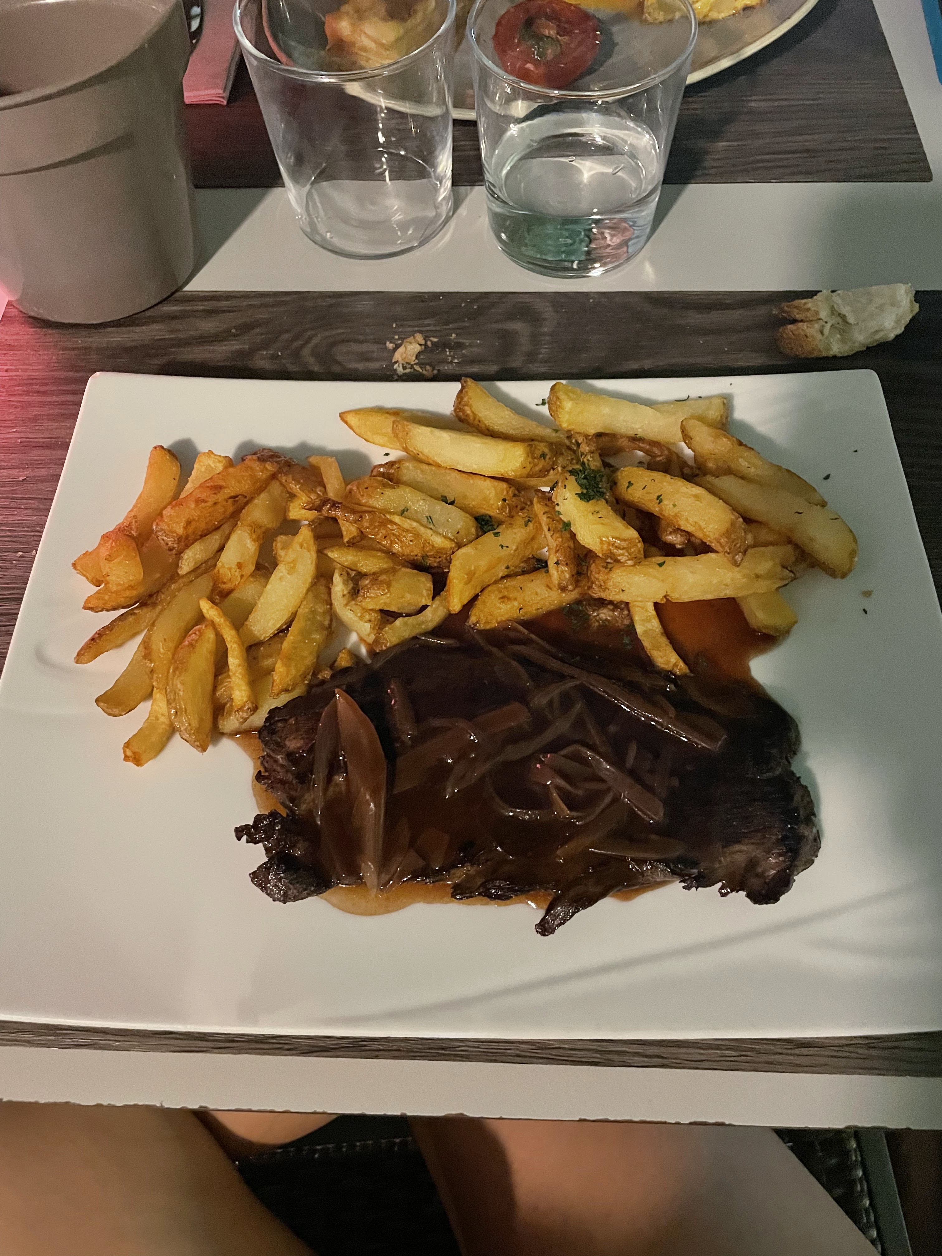 les plats sont copieux et délicieux, la viande est excellente et les frites semblent maison. par contre, les couteaux ne coupent pas (gênant quand on mange une cote de boeuf) si vous y allez en hivers, il fait très froid a cote des fenêtres de la véranda, mal isolées, et l'accueil n'est pas visible de la porte d'entrée, donc personne pour vous dire bonjour et au revoir !
