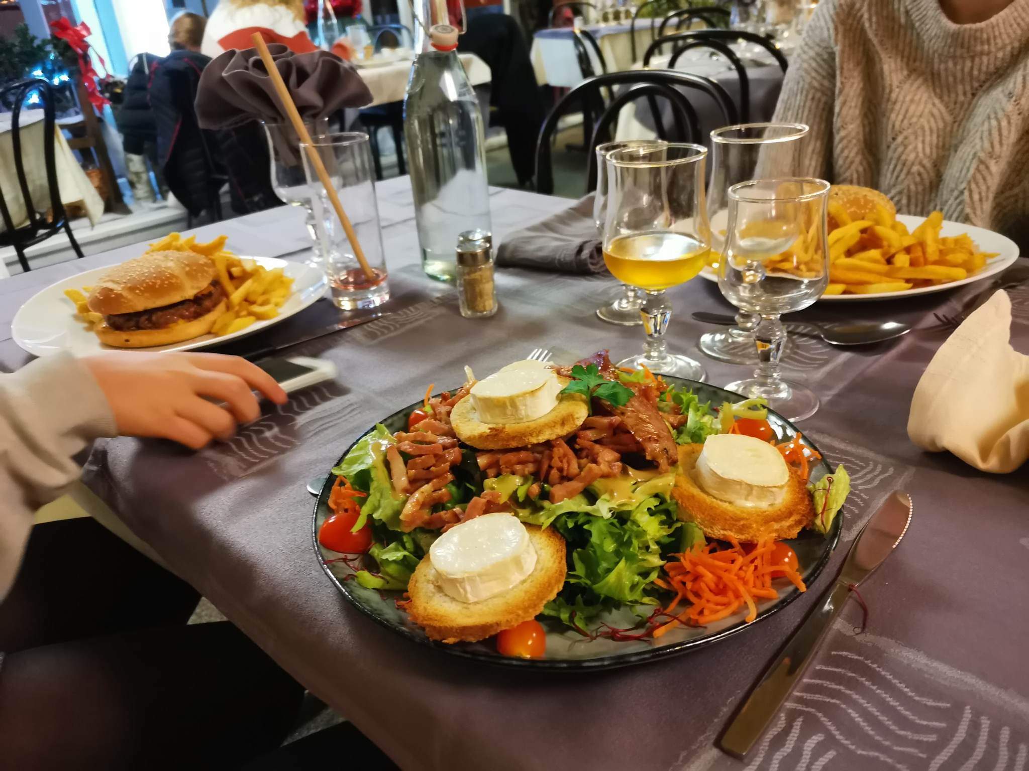 Nous y avons mangé à quatre. L'entrée (2 x escargots, soupe de poisson et terrine) était bonne. Plats principaux généreusement dimensionnés et bien présentés. Seules mes frites sont restées un peu trop longtemps dans la friteuse et l'un des deux serveurs n'était pas toujours au courant. Le rapport qualité/prix pour les plats principaux était très bon, pour les entrées, comme c'est l'habitude en France, moins. Nous n'avons pas trouvé le mobilier démodé ou démodé, mais simplement typique du pays. Ambiance agréable. Dans l'ensemble, malgré de petits défauts, arrondi à 5 étoiles.