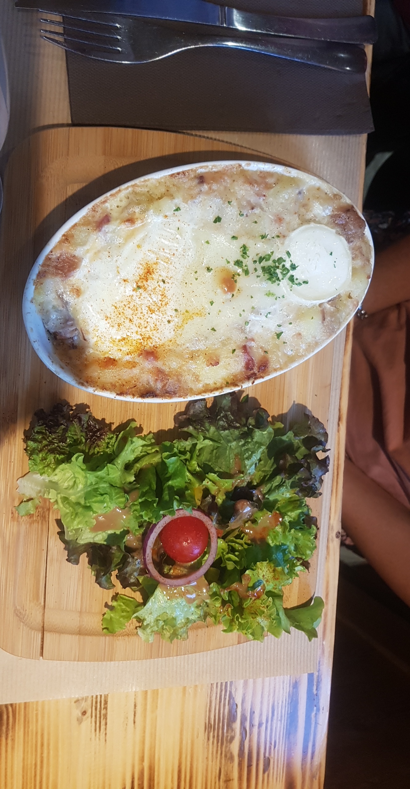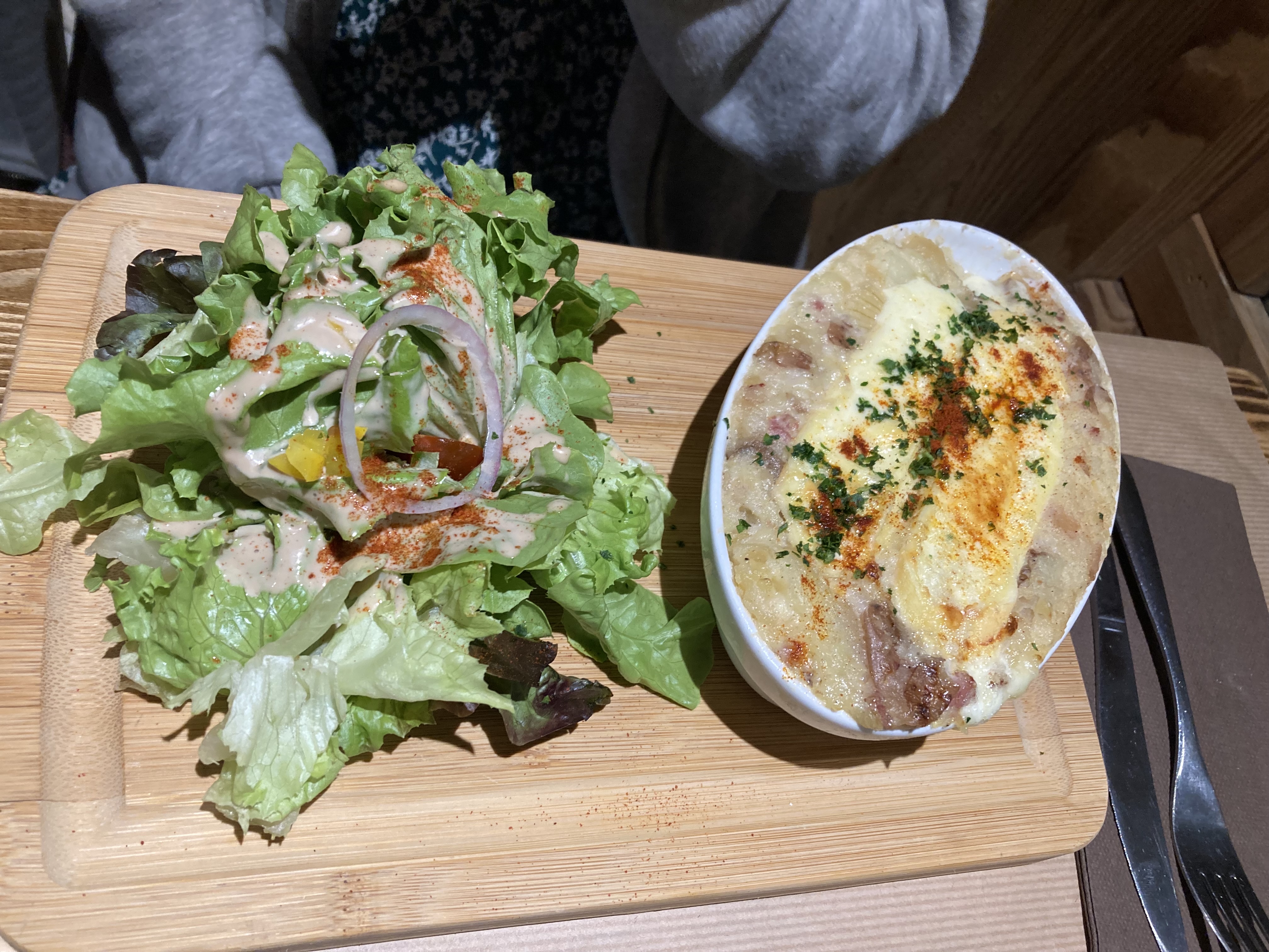 Repas excellent et très bon service. Je recommande ce restaurant. La salle est un peu bruyante mais ce n’est pas anormal surtout quand le restaurant affiche complet. J’ai pris la tartiflette avec charcuterie et c’était vraiment très bon et léger. À bientôt avec plaisir !