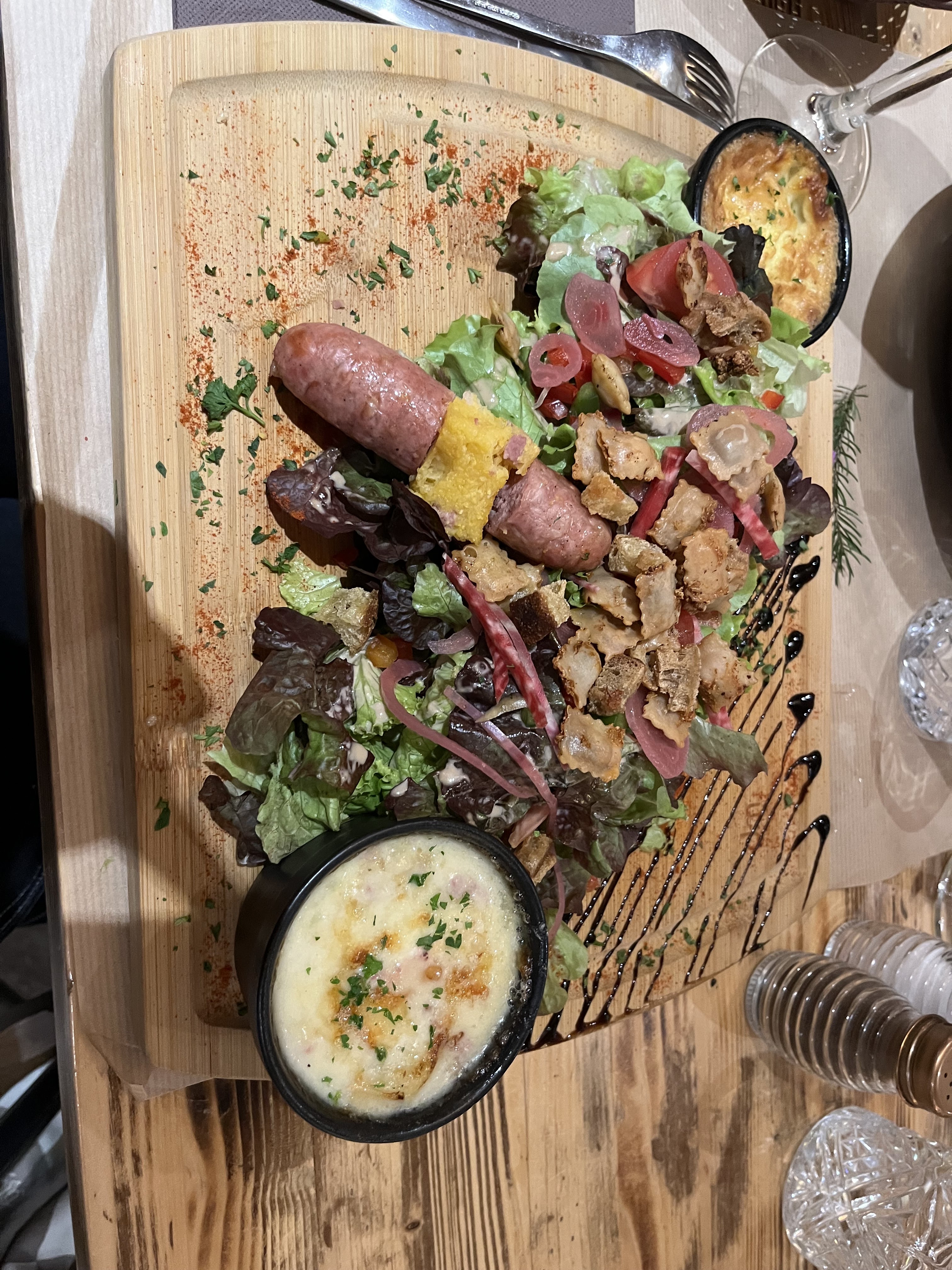 Nous avons passé un moment très convivial et nous nous sommes régalés avec la raclette. Mentions spéciales pour le spritz savoyard et pour notre serveur Daniel. Nous recommandons !