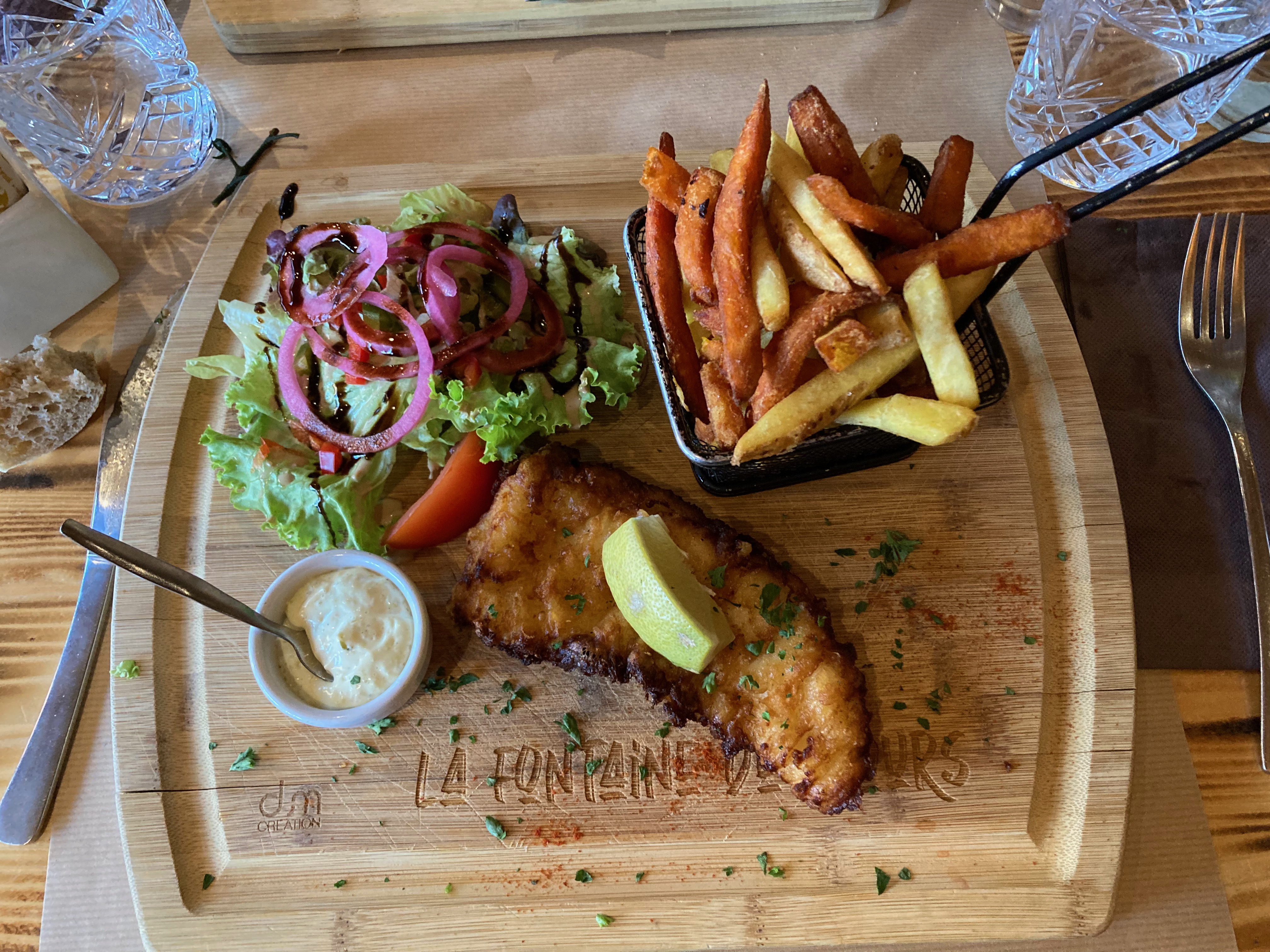 Un énorme merci au restaurant la fontaine de l’ours pour leur délicieuse cuisine et leur accueil chaleureux Une mention spéciale à Daniel notre serveur pour son service impeccable. Nous avons passé un moment merveilleux et nous avons hâte de revenir. À bientôt les normands (Alex)