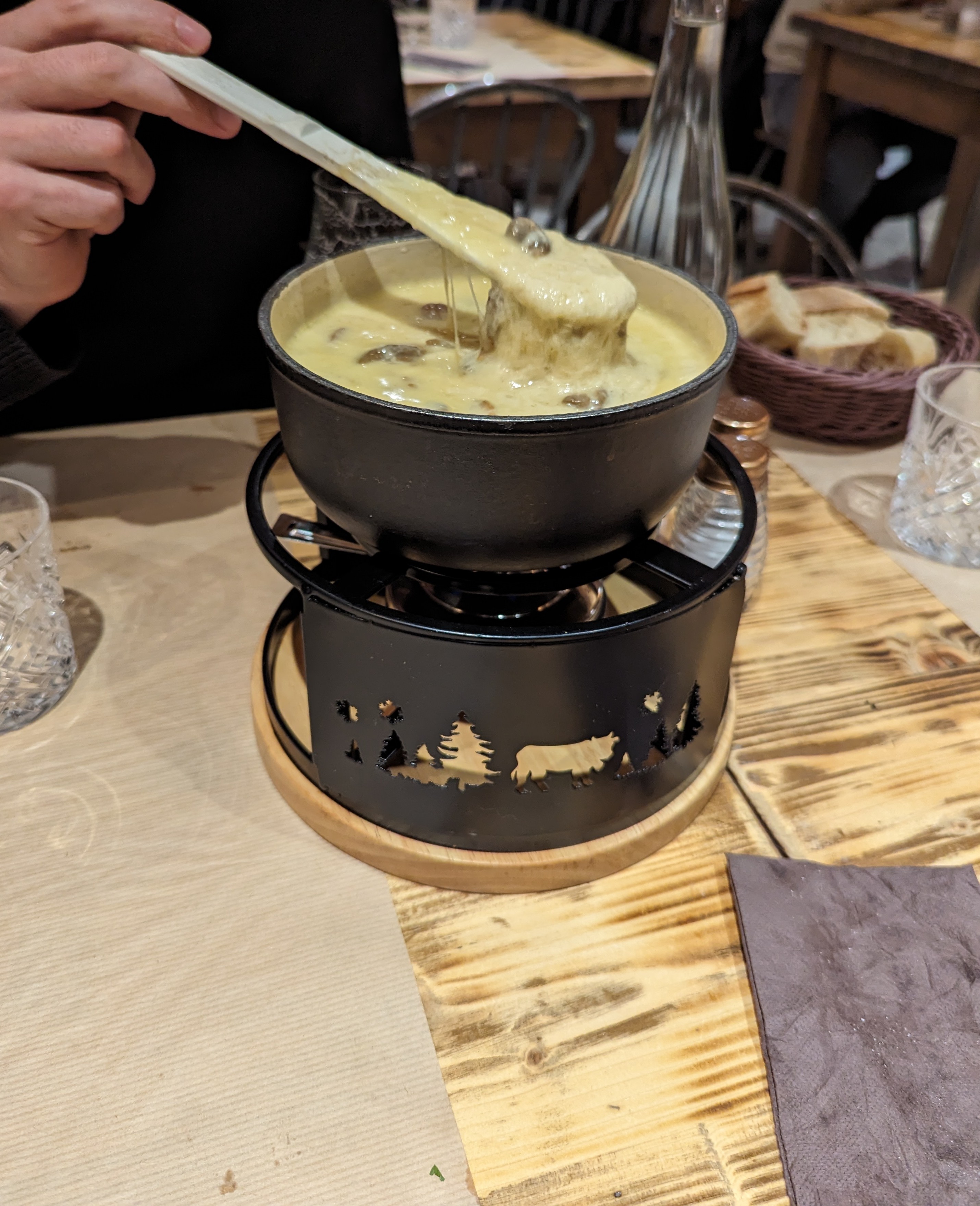 La fondue était vraiment délicieuse. Le personnel très sympathique. La brioche perdue très gourmande. Par contre j’ai jamais vu qu’on devait couper le pain nous même pour faire des croûtons lol… Vraiment dommage pas de bières de la région.