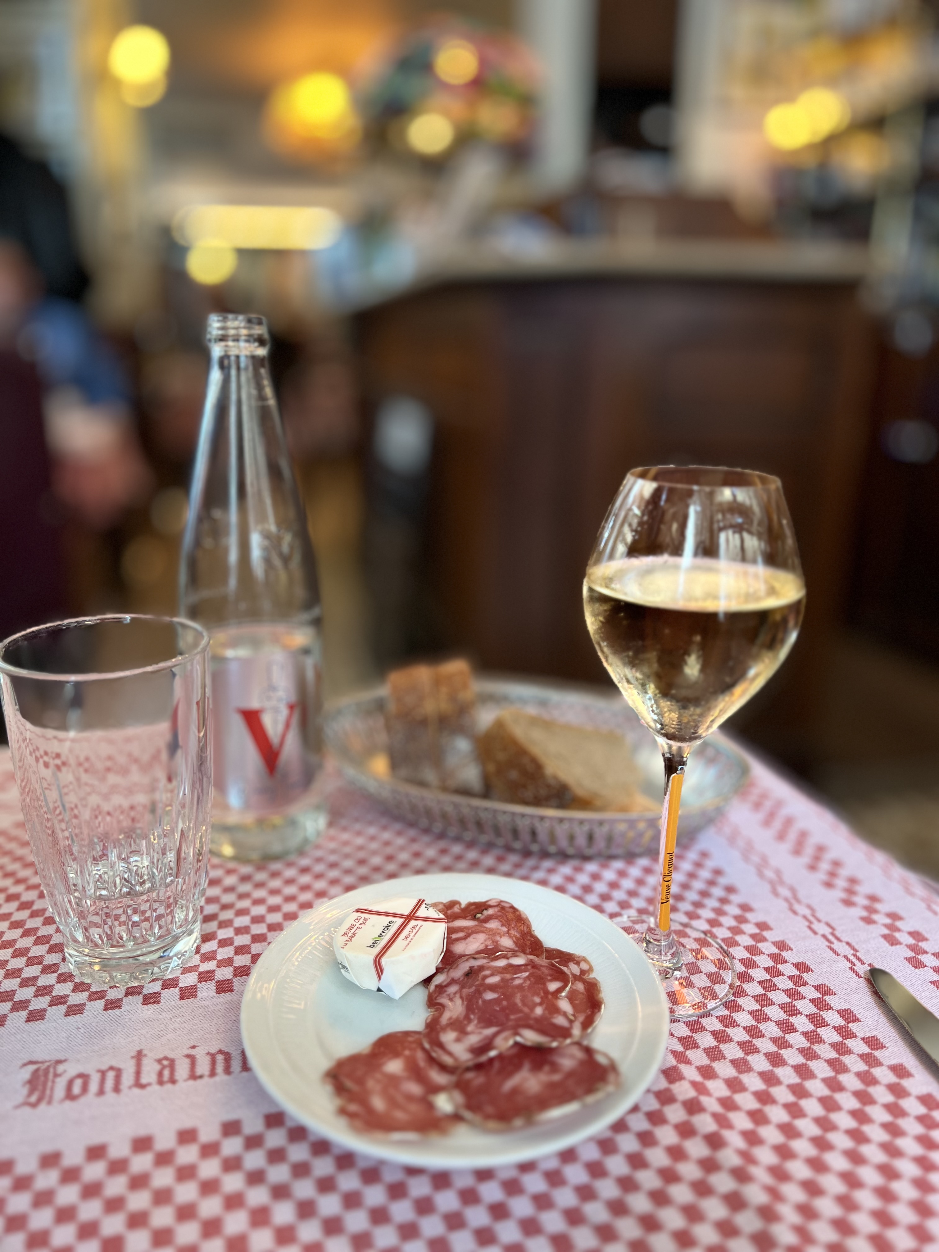 Publié sur Instagram (ericpaname) Longue de 1 800 m, la rue Saint-Dominique traverse le 7e arrondissement de Paris, du boulevard Saint-Germain jusqu’au Champ-de-Mars. On peut y admirer une multitude d’hôtels particuliers des XVIIIe et XIXe s., notamment celui abritant le ministère de la Défense (hôtel de Brienne), ainsi que deux ambassades (Paraguay et Roumanie) mais c’est au 129 que je rejoins la Fontaine de Mars, créée en 1908 à proximité immédiate d’une fontaine bien réelle du même nom, aussi appelée fontaine du Gros-Caillou, édifiée un siècle plus tôt. Carrelage de tommettes octogonales, mobilier de chêne, nappes à carreaux rouges et blancs, un vrai décor à la fois familial et parigot qui fleure bon la roborative convivialité des bonnes auberges d’autrefois. Un généreux kir mûre, quelques rondelles de sauciflard et du beurre salé cru à la baratte de bois du fromager Beillevaire me laissent le temps de décortiquer la carte. Un semainier pour les plats du jour, des entrées, des spécialités, des plats et incontournables, une ardoise fournie en sus, des poissons, sans oublier un vaste choix de fruits de mer. Je vacille et salive mais ne sais que choisir. Décembre étant le mois de la pleine saison du lièvre, je tente la terrine de gibier maison au foie gras et chutney de figue. Accompagnée de cornichons dans leur pot et d’un convenable sancerre rouge La Croix du Roy 2018 du domaine Lucien Crochet, elle est énorme mais je lui tiens tête et tombe soudain sur un plomb, preuve que le lièvre n’est pas issu de l’élevage. Vient ensuite le suprême de poulet aux morilles, crème de morilles et riz pilaf, un tendre délice riche en ascomycètes. La carte des desserts est tout aussi bienveillante que sa consœur principale. Une tourtière landaise, pomme pruneau et glace à l’armagnac restera dans le thème du jour. Au final, un excellent prétexte pour siester tout l’après-midi dans l’attente des prochaines agapes, le soir même. Comptez tout de même près de 100 € pour ce gueuleton assumé. La Fontaine de Mars n’est vraiment pas une farce.