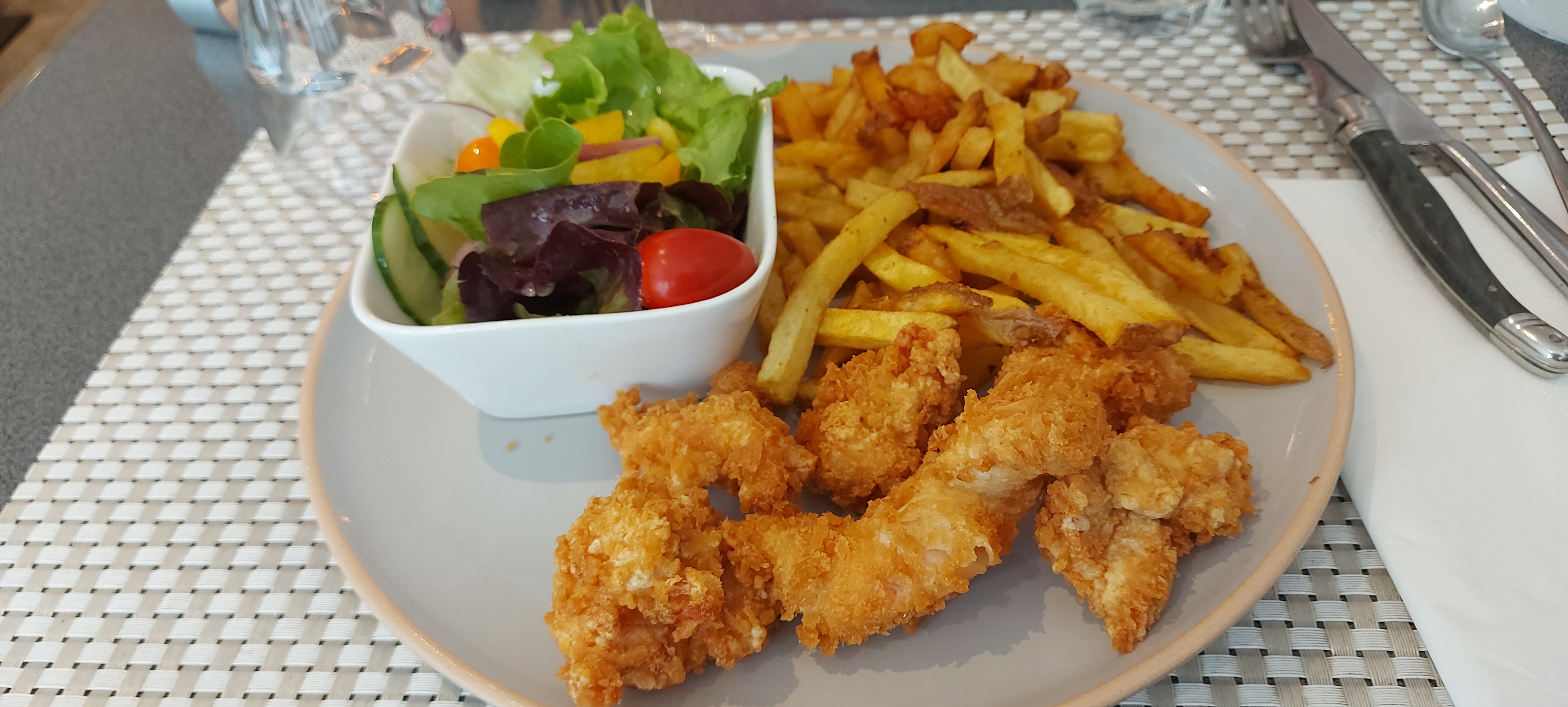 Nous avons déjeuné beaucoup en France pendant les vacances d'été 2015 et ce fut notre seule mauvaise expérience. Nourriture très simple. Kaptein Igloo poisson avec frites molles et viande frite au beurre brûlé.