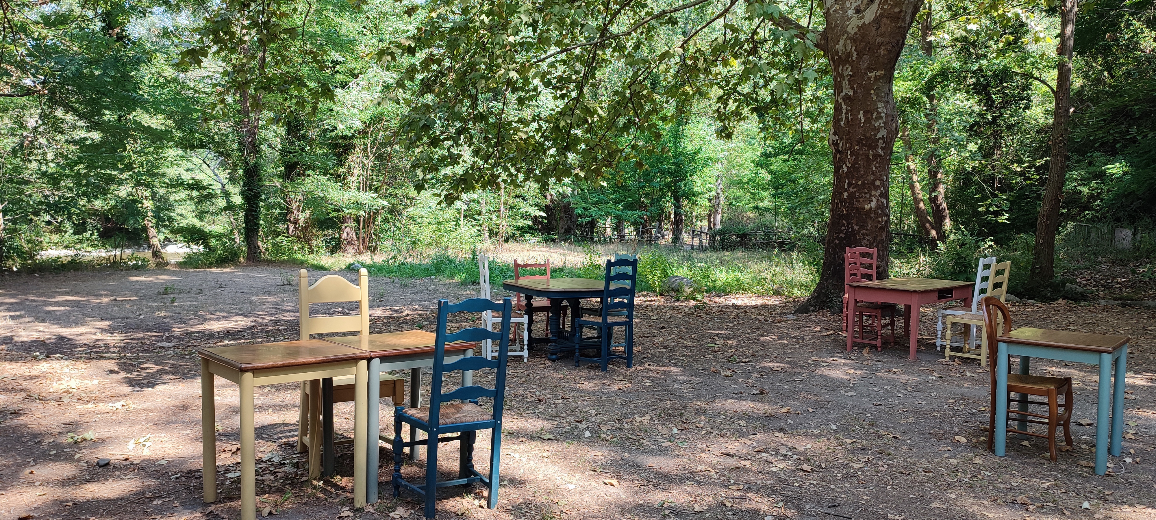 Endroit rafraîchissant, calme et très agréable au bord du Tech. Décor atypique.