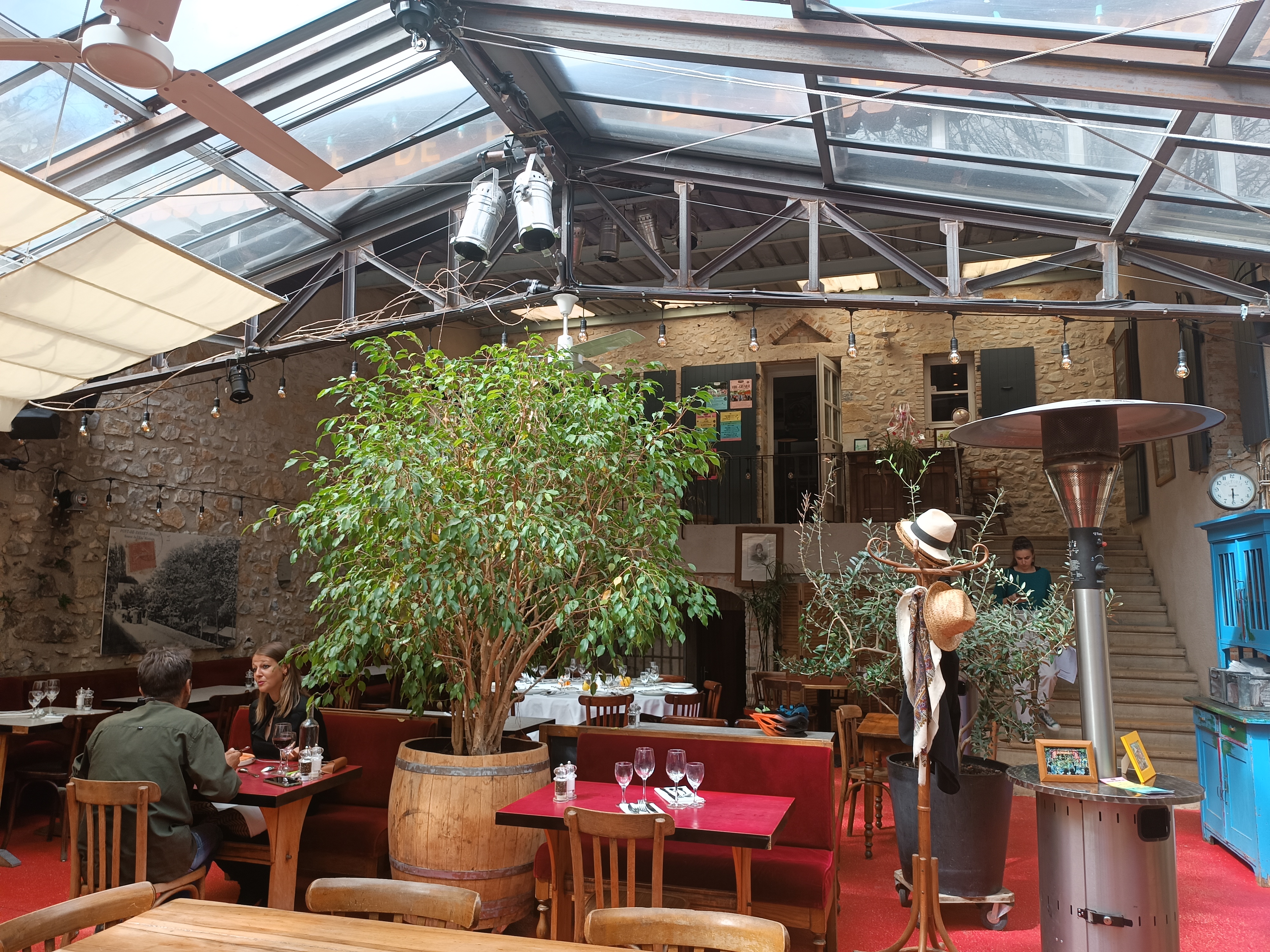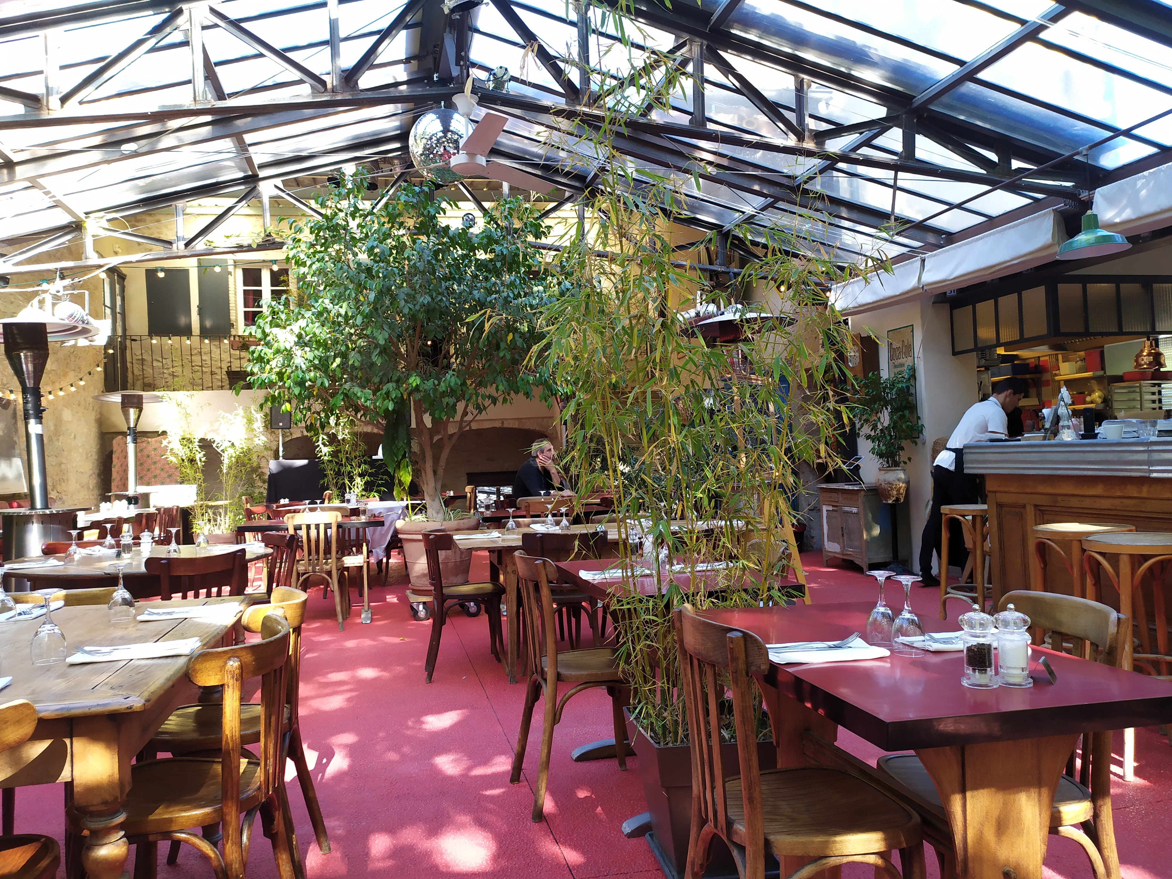 Convivialité et bonne humeur au rendez-vous. Serveur(se)s agréables et souriants en toutes circonstances. Un lieu très beau a l'ombre des platanes, idéal pour les repas d'été au frais.