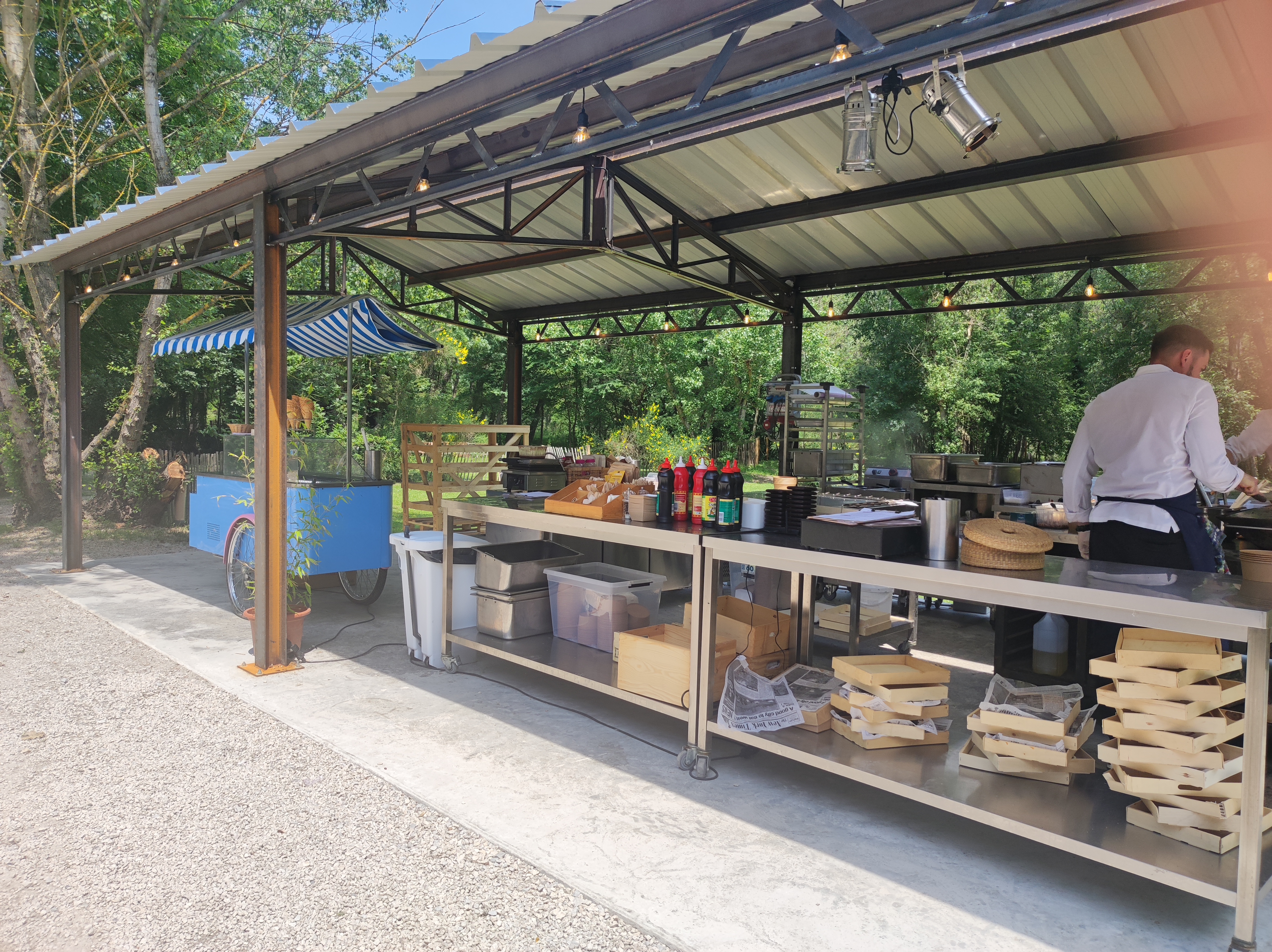 Un lieu très agréable découvert lors d'une brocante. Un système bien organisé pour la restauration ce qui fait que l'attente n'est pas trop longue malgré le monde. Personnel sympathique aussi bien à la restauration qu'au bar