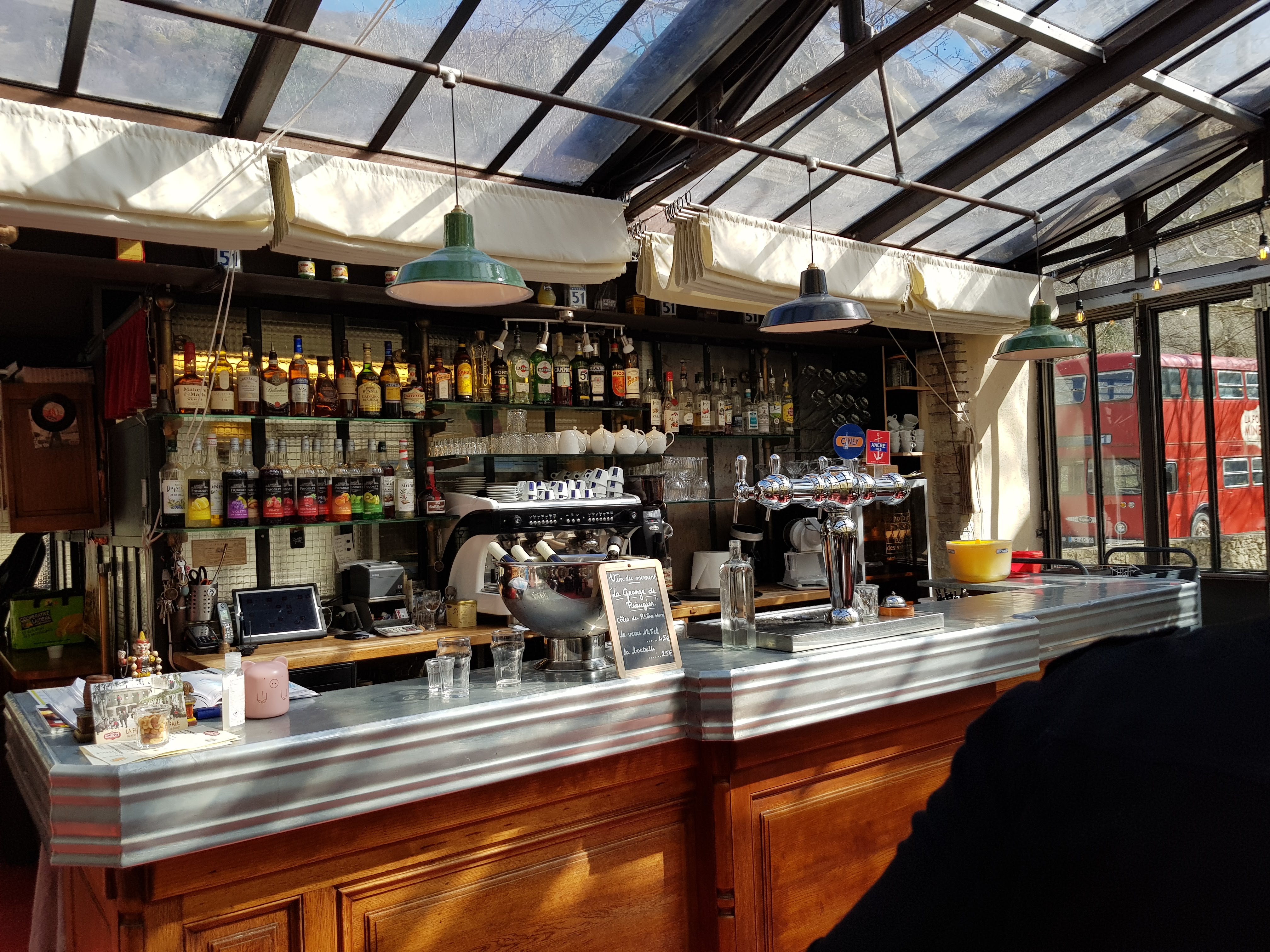 Le cadre est incroyable, presque surréaliste. La rivière en contre-bas, une verrière magnifique, des petites loupiotes charmantes… un personnel aux petits soins et des plats de qualité. Les cocktails sont également très bons. Nous avons passé une excellente soirée et aimerions y revenir en journée afin de profité également de la rivière et du soleil.