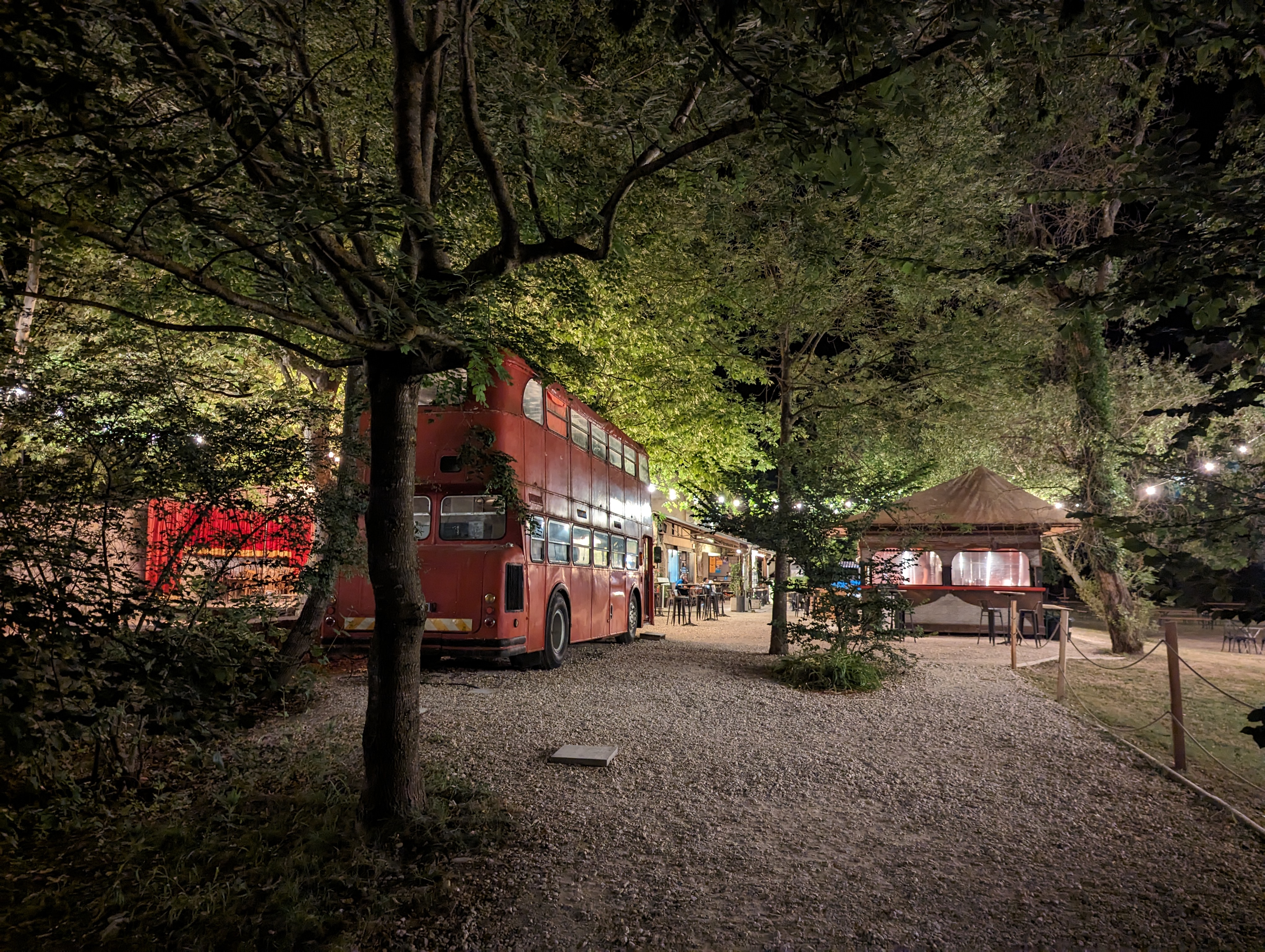 Passés devant totalement par hasard, nous nous y sommes arrêtés, et nous n'avons pas regretté ! Des lieux comme ça, il devrait y en avoir tellement plus ! Un bel espace avec un restaurant, une buvette, un foodtruck et surtout... Une piste de danse ! Tout pour passer une bonne soirée. Un régal ! Nous n'avons pas testé le resto (il valait mieux réserver), mais la buvette et le foodtruck au top ! À refaire !