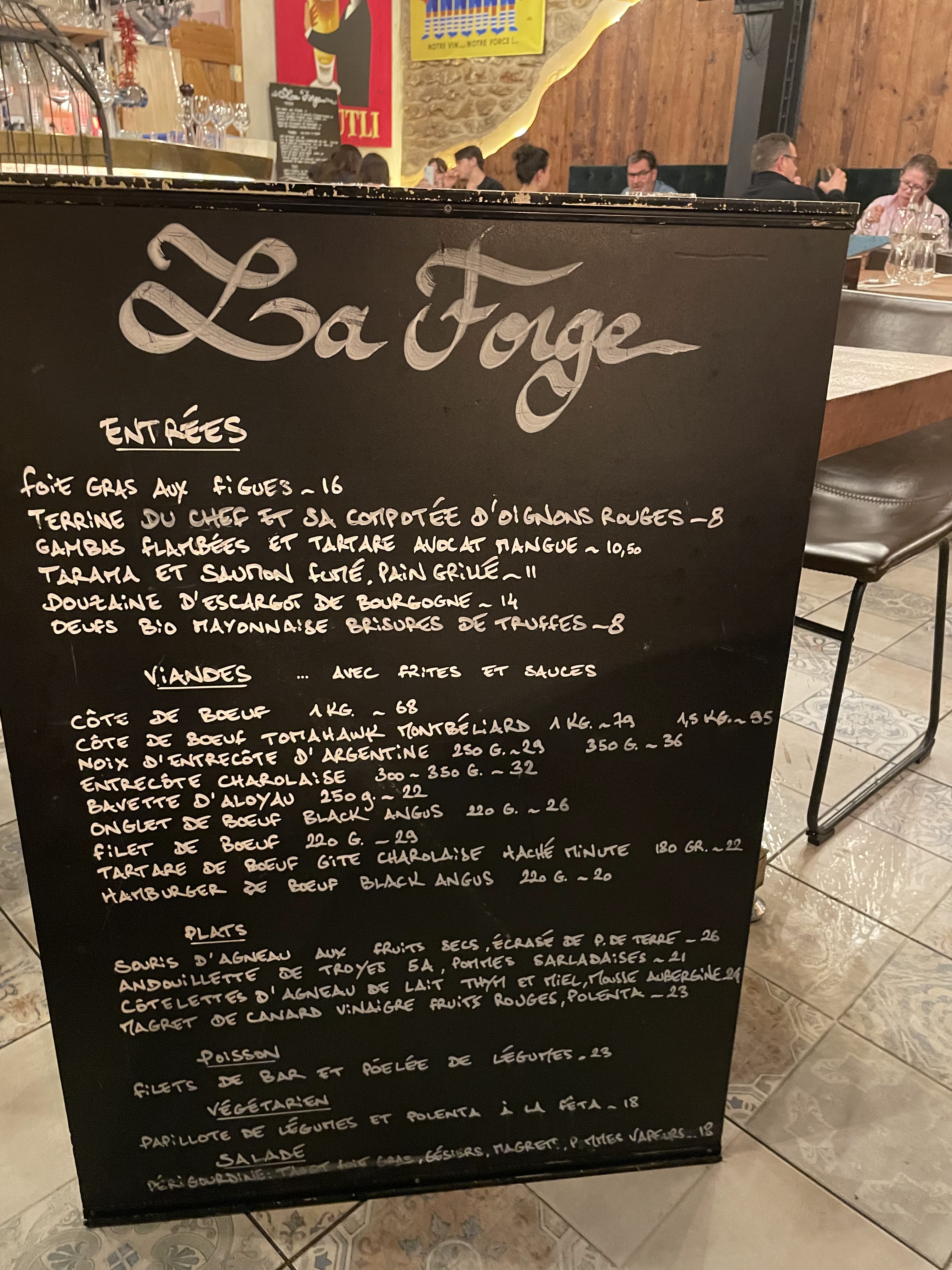 Je recommande grandement La Forge. Cuisine excellente avec un très bon rapport qualité prix. Nous étions un groupe de 11 personnes avec chacun des goûts différents en termes de viande. L'équipe de la Forge a su répondre à nos exigences et nous orienter dans le choix de viande. Nous reviendrons avec un grand plaisir. Merci encore.
