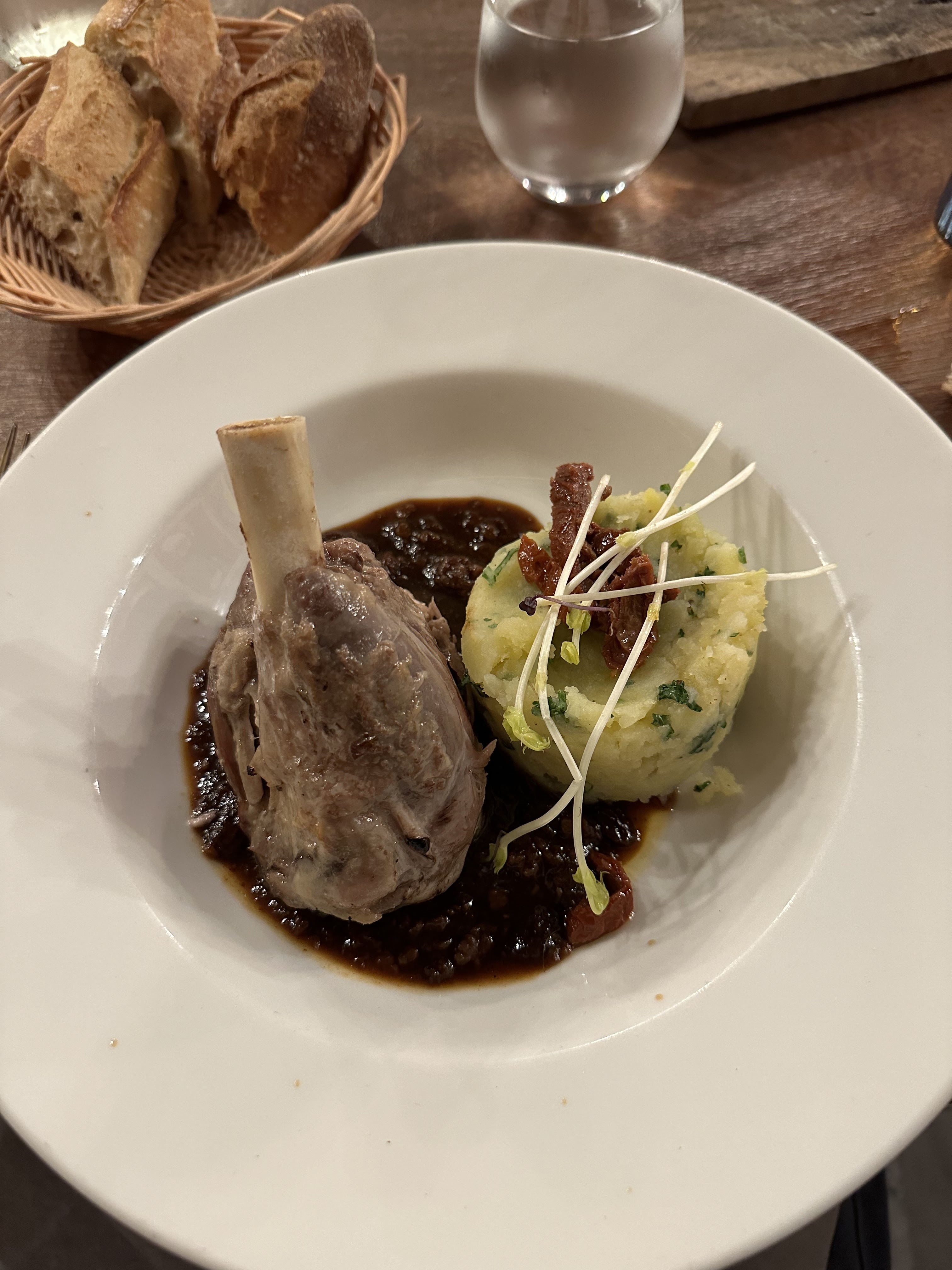 Repas délicieux, service sympathique et attentionné et une option végétarienne ! J'ai eu le jarret d'agneau qui était succulent et mon mari la papillote de légumes. Nous avons partagé un cognac après le dîner. Dans l’ensemble, c’est une excellente expérience culinaire.