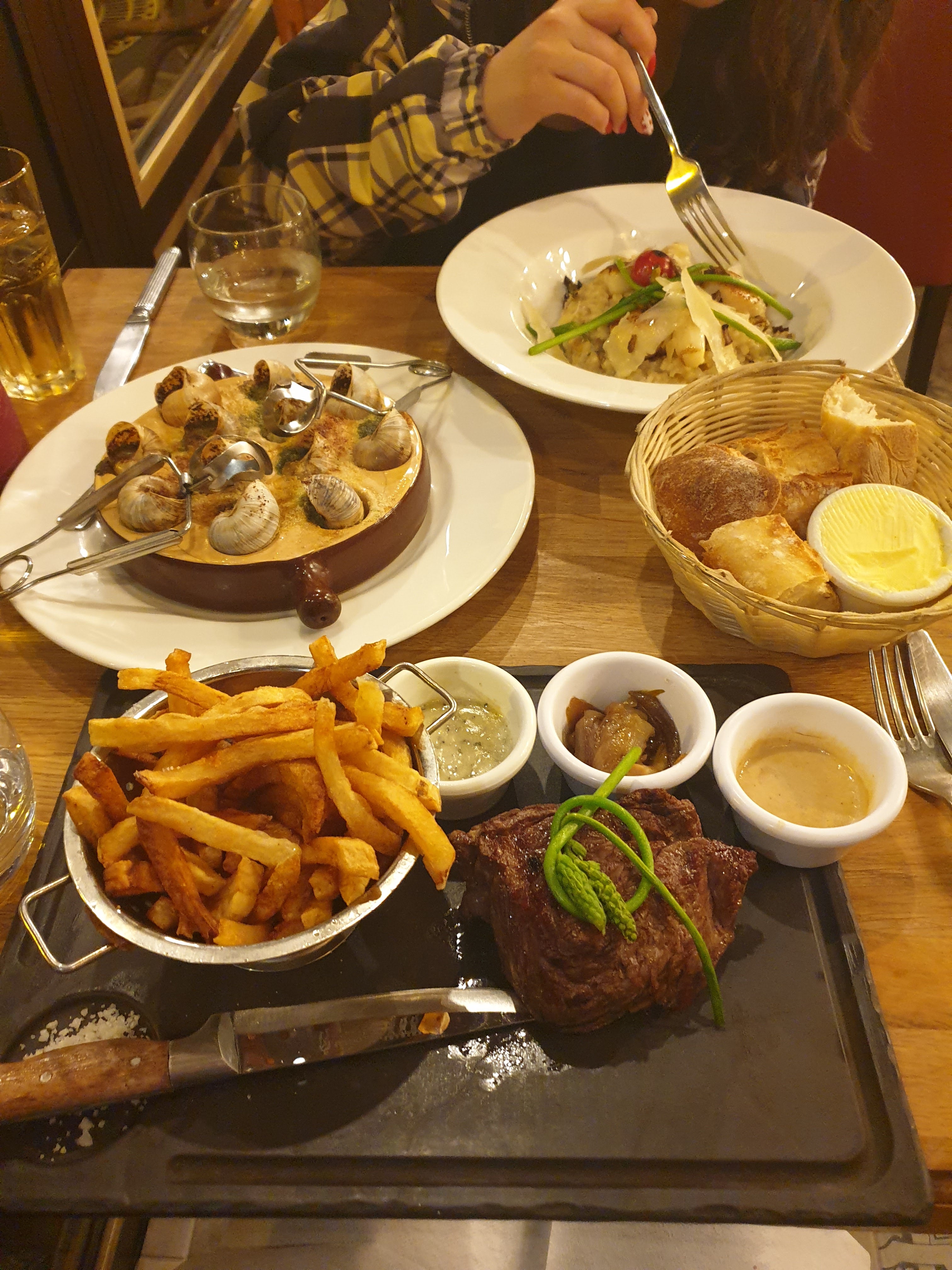 Je suis venu ici avec ma sœur et nous avons tous les deux adoré. Je ne me suis jamais contenté de commander un steak à Paris mais ça. Non seulement ils servent un excellent steak, mais d'autres plats d'accompagnement comme des frites et des escargots étaient également bons. Personnel aimable, atmosphère chaleureuse, bonne cuisine, j'aimerais revenir.