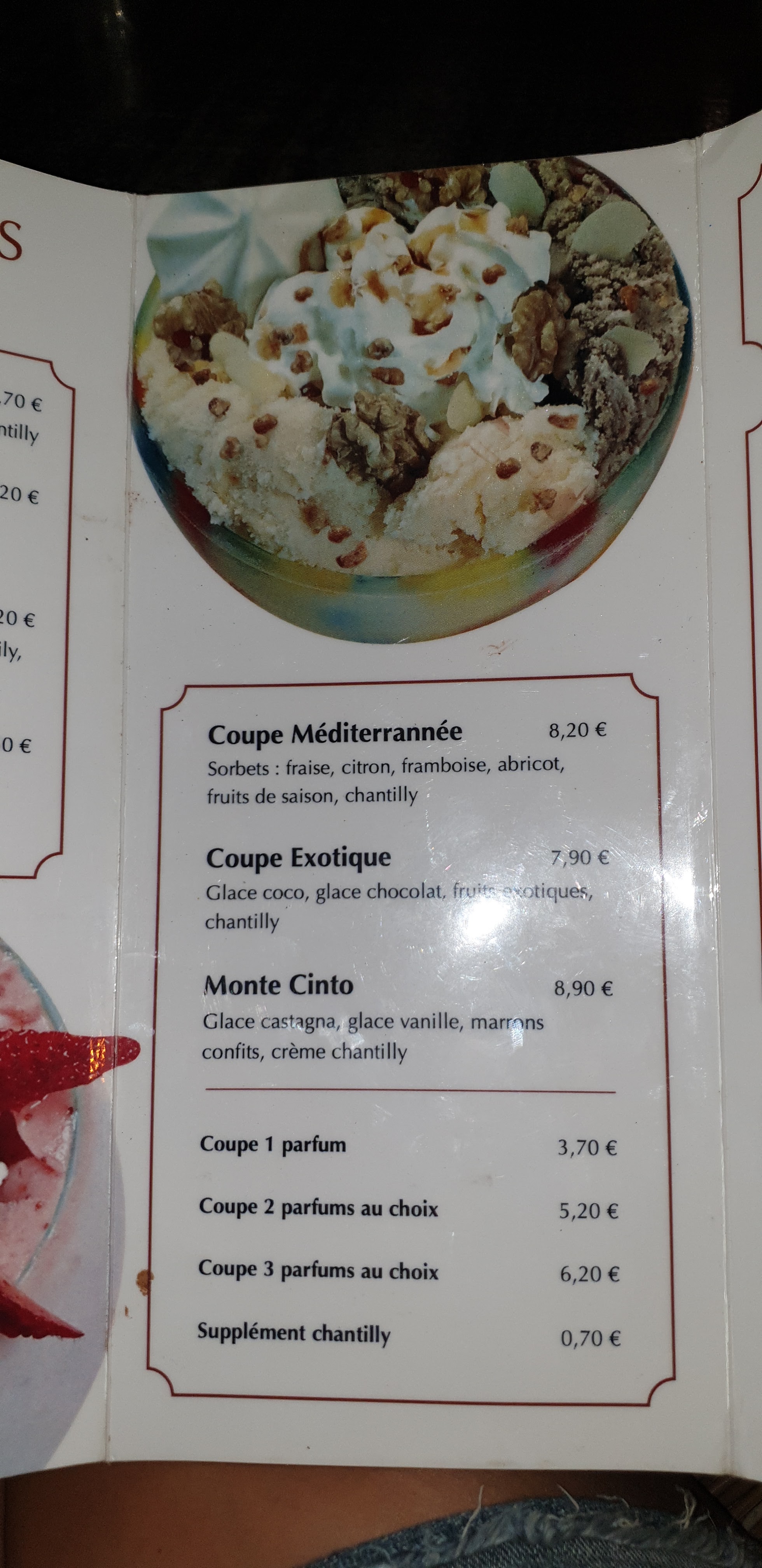 Crêpes au Nutella et très bonnes glaces (rien à envier aux italiennes). Les prix des glaces sont bien plus élevés que les glaces italiennes mais inférieurs à ceux des glaciers artisanaux de Corse.