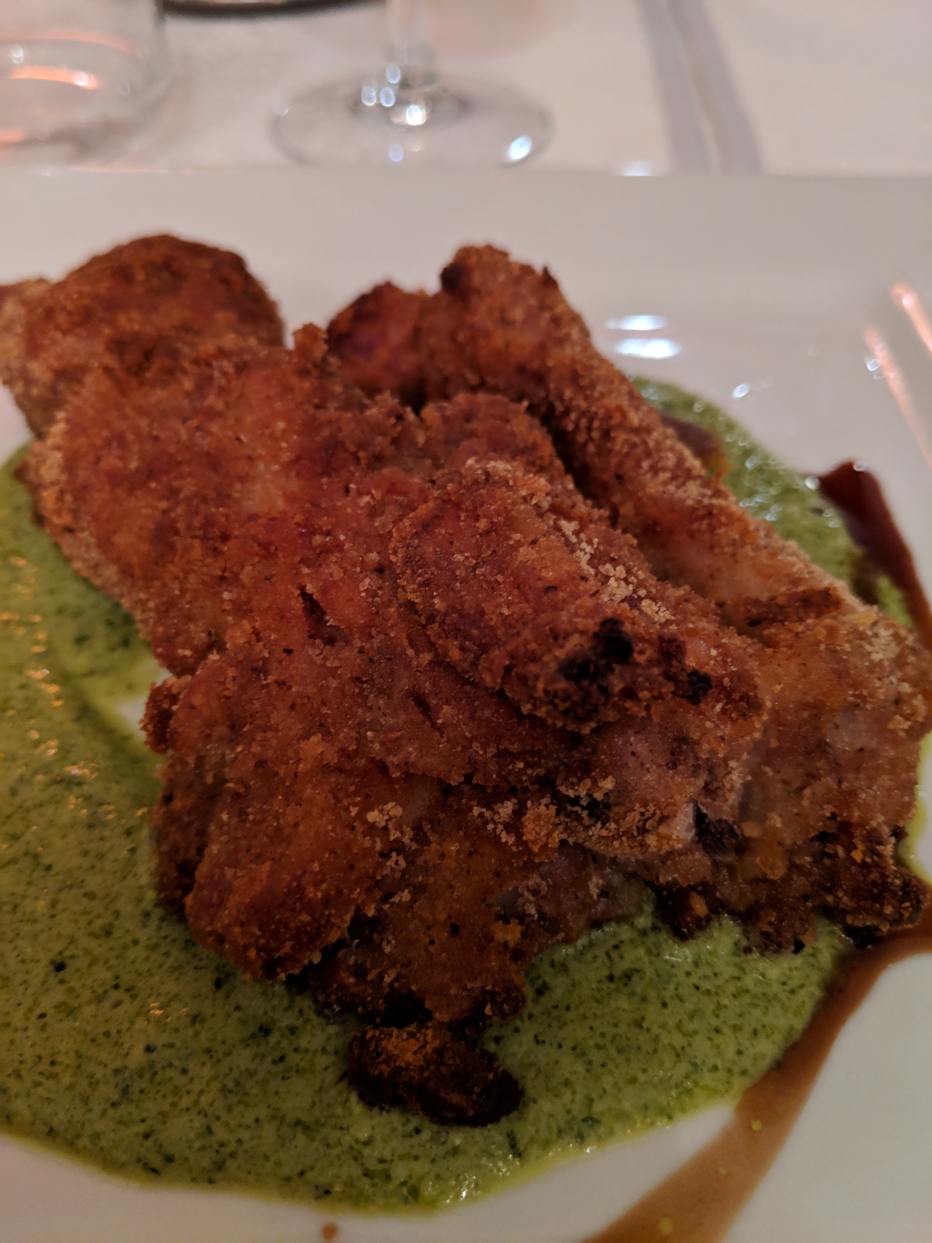 Repas créatif et gourmand. Le personnel est très serviable et vous avertira s'il estime que vous n'êtes pas exactement sûr de ce que vous commandez (trotters). L'atmosphère était haut de gamme, la nourriture étant excellente et inventive. Le menu présente quelques rebondissements intéressants sur la cuisine régionale. Un restaurant dans lequel je reviendrais, surtout pour voir comment la carte varie au fil des saisons.