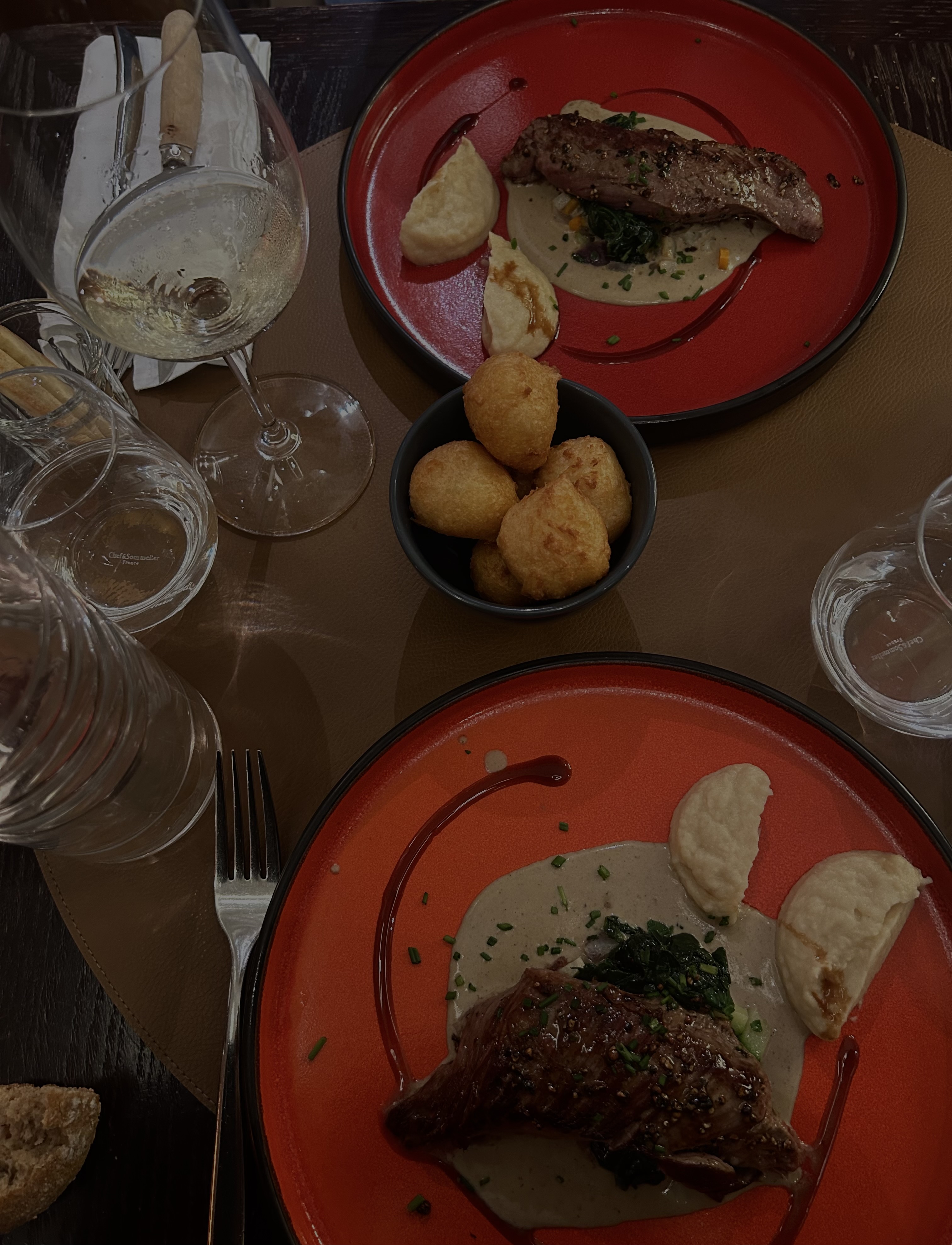 Je suis tombé par hasard sur ce restaurant et j'ai été très enchanté par la nourriture, le personnel et l'ambiance. Nous avons adoré les escargots et le ragoût de bœuf. Tous les vins de la « sélection du moment » étaient de classe mondiale. Je le recommande vivement !