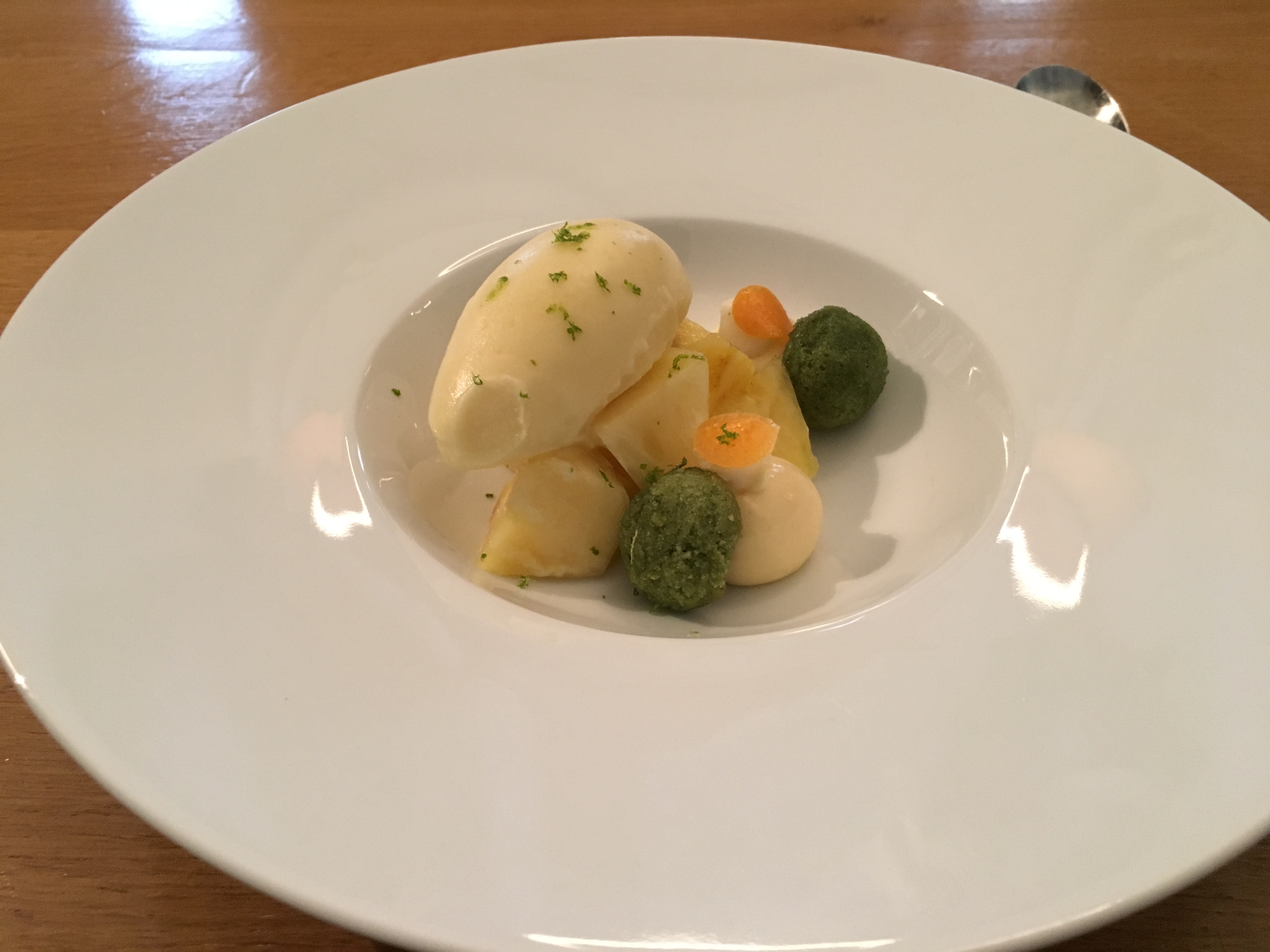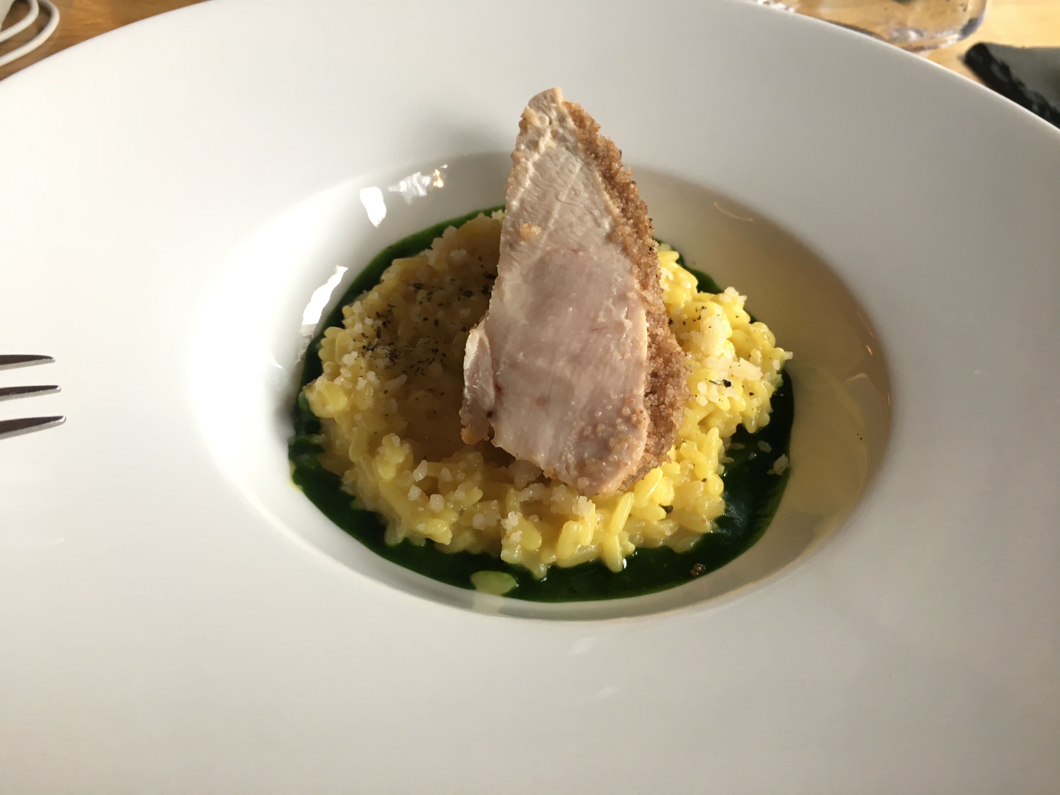 Testé lors d'un déjeuner. En entrée, ce fût un paté en croute. Bon, mais trop froid et peu assaissoné; En plat, poisson et un risotto - un peu trop cuit - de couleur verte, légèrement trop crémeux. Il manquait ce craquant qu'on attend d'un bon risotto al dente. En dessert, un Mont-Blanc à la texture classique (même s'il était revisité). Un peu de légèreté aurait permis de mieux l'apprécier. En résumé, de très bonnes choses et des idées innovantes. A restester prochainement pour être sur de ne pas se faire une mauvaise impression.