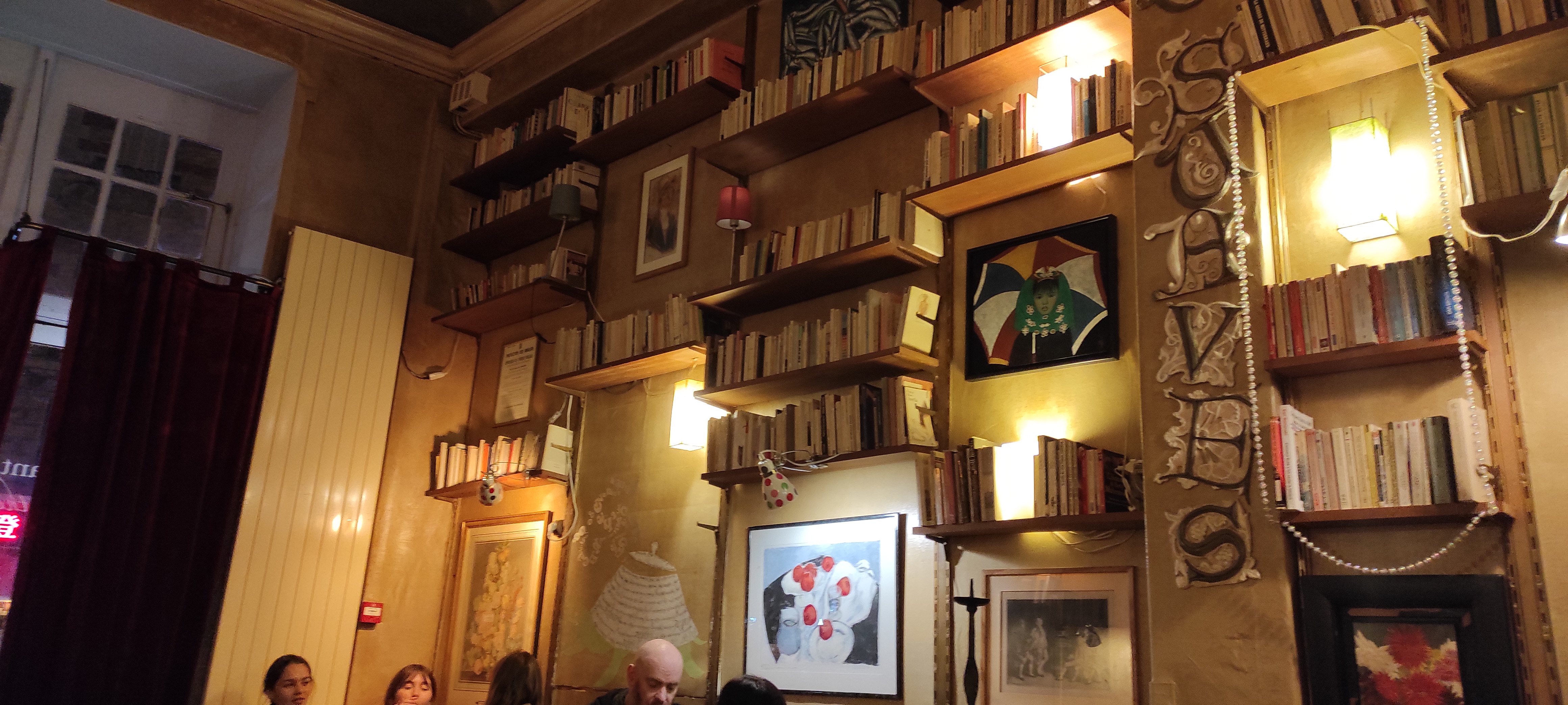 Les années passent et le lieu reste fidèle à lui-même: service sympathique, des prix raisonnable pour Paris, un cadre agréable avec les banquettes pour déjeuner ou prendre le thé à quatre ou à deux, un décor original et chaleureux, les plafonds hauts donnent un sentiment d'espace, et les livres qui tapissent les murs servent de rappel des liens entre le quartier latin, la littérature et la culture.