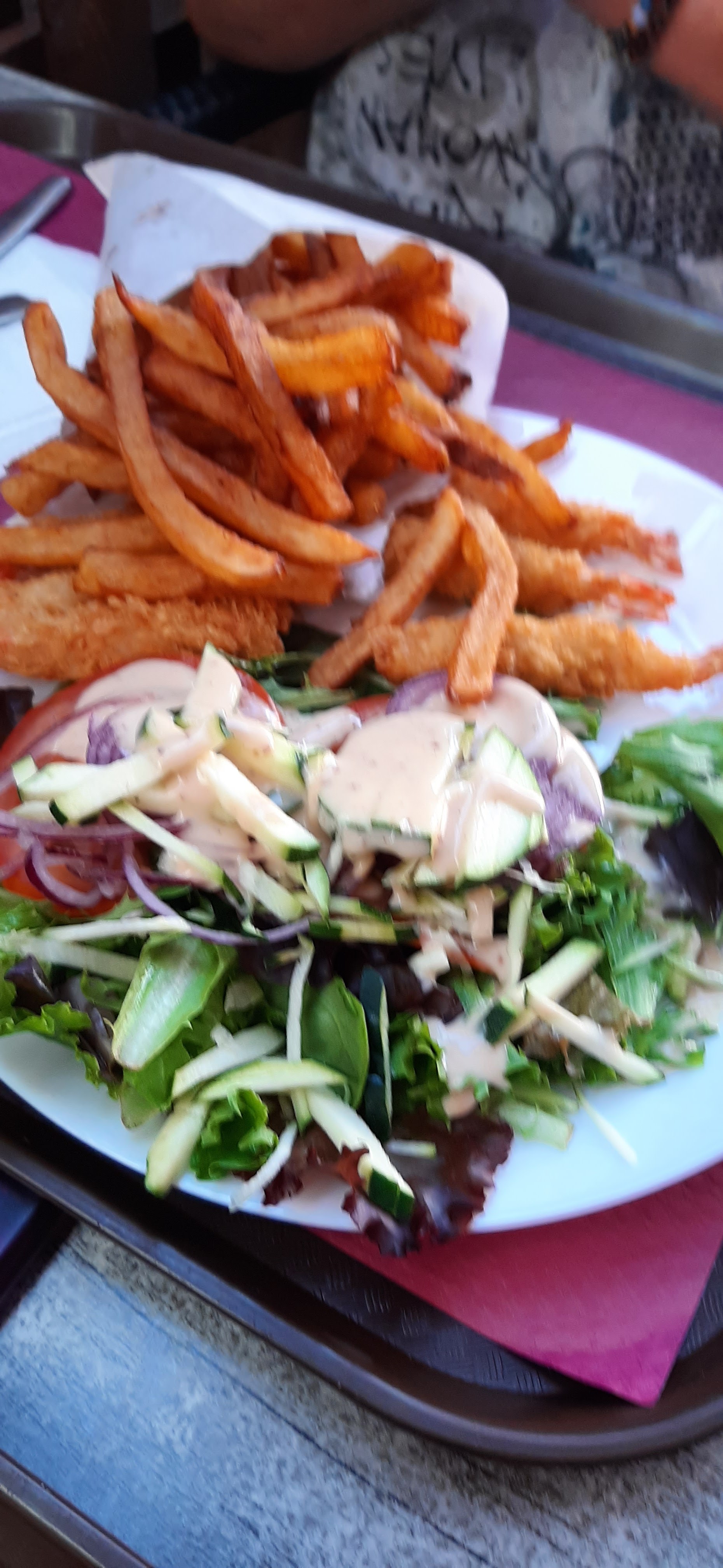 Des bonnes frites à la graisse de boeuf, une équipe sympathique et qui a accepté nos chiens sans rien dire ! Merci pour ce repas 😁