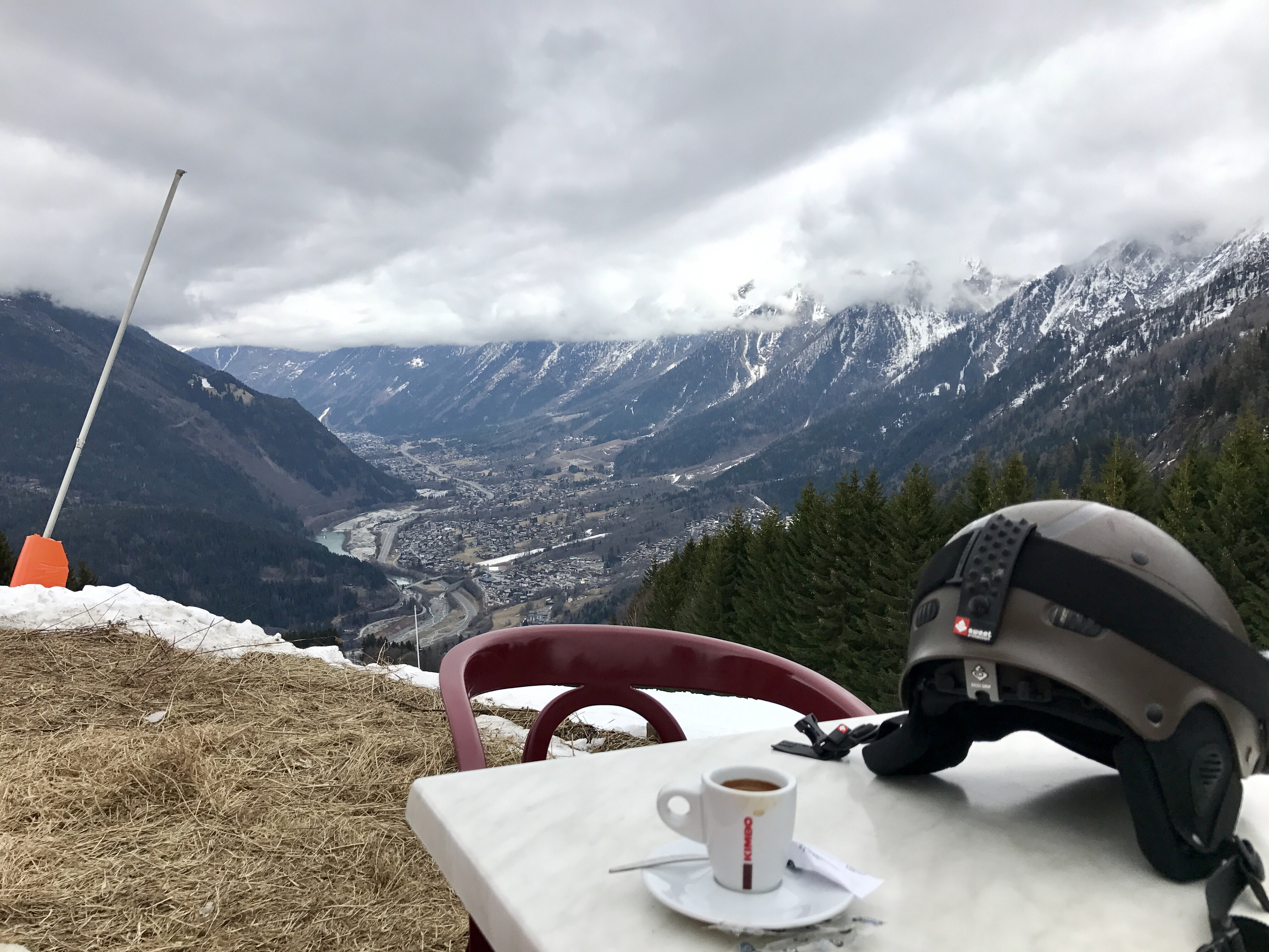 Une halte bien méritée à la Fré Mi aujourd'hui face au Mont-Blanc après une bonne matinée en hors-piste aux Houches. Les bières pression sont excellentes et les beignets de pomme de terre délicieux. Bon accueil, serveuses au top.