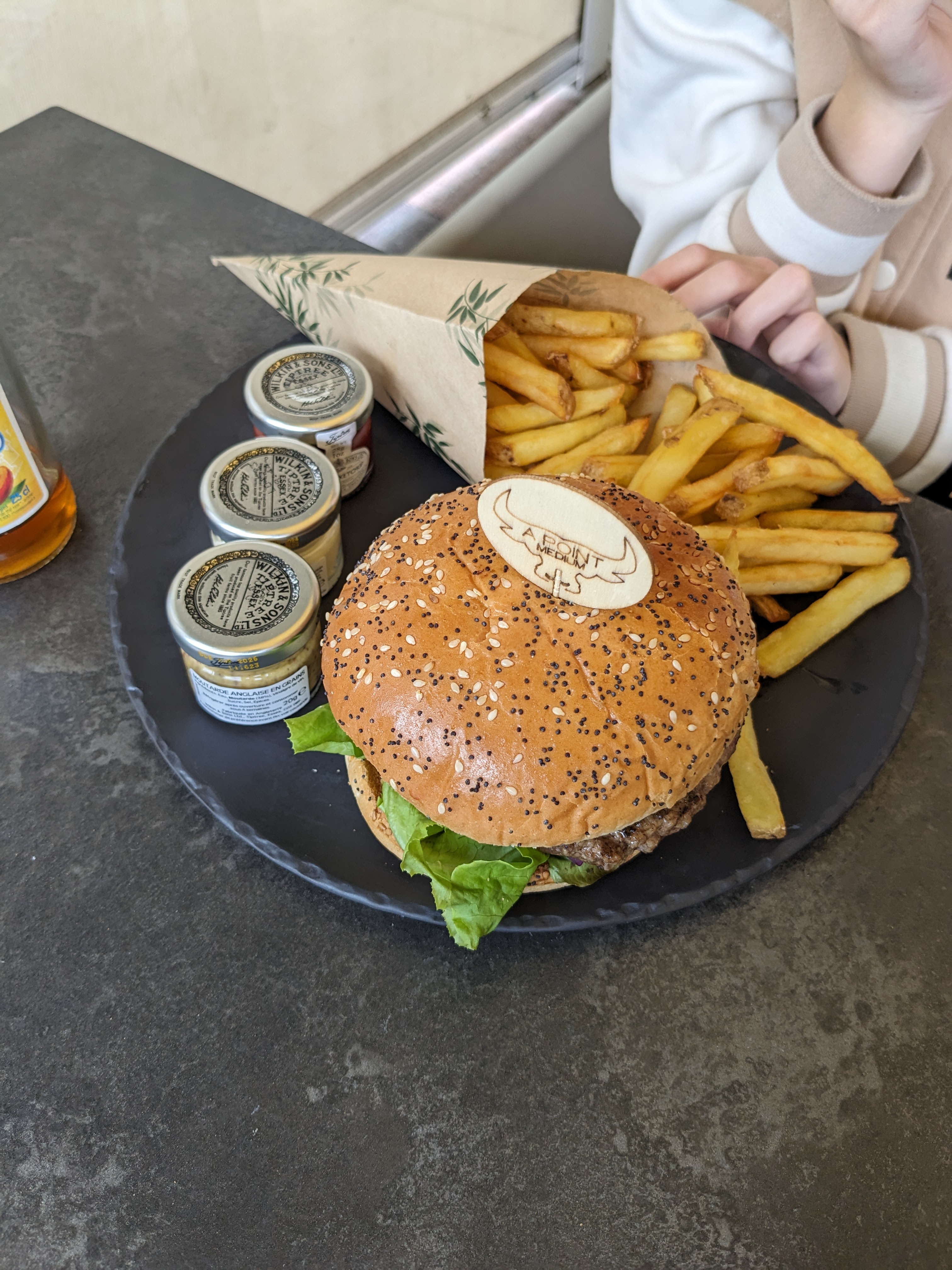 C’est une fois rentrée chez moi, que je m’aperçois sur une photo que la sauce moutarde servi dans l’assiette était périmé depuis Janvier 2023 alors que nous sommes en Juin 2023, dommage que je les pas vu sur place, mais je trouve cela inadmissible de servir des produits périmés ! Pas de frites maison non plus pas terrible mise à part le burger …