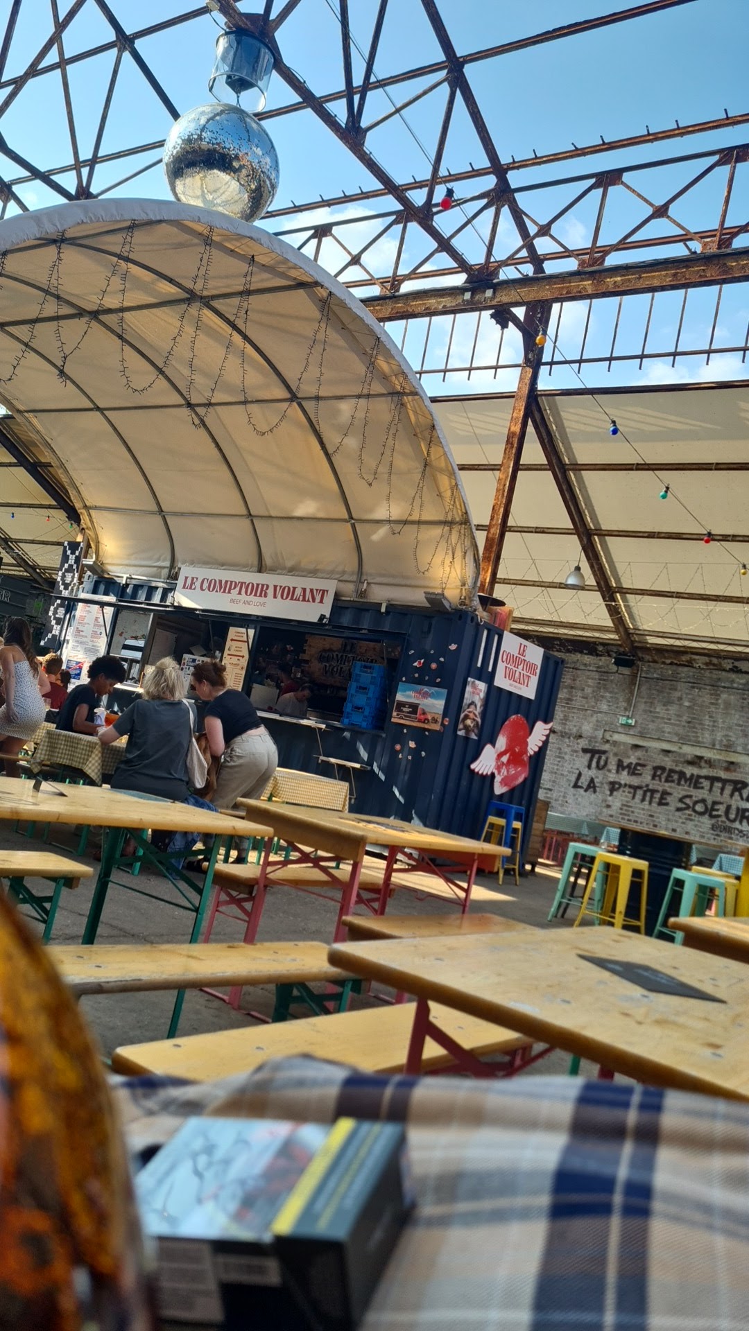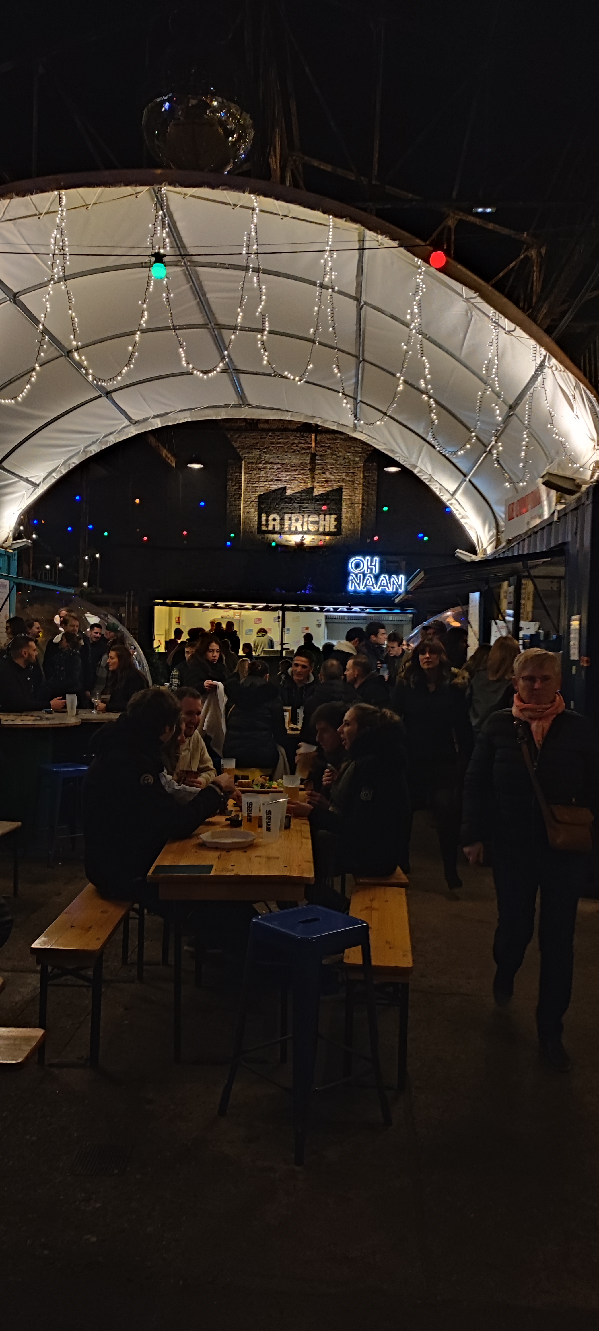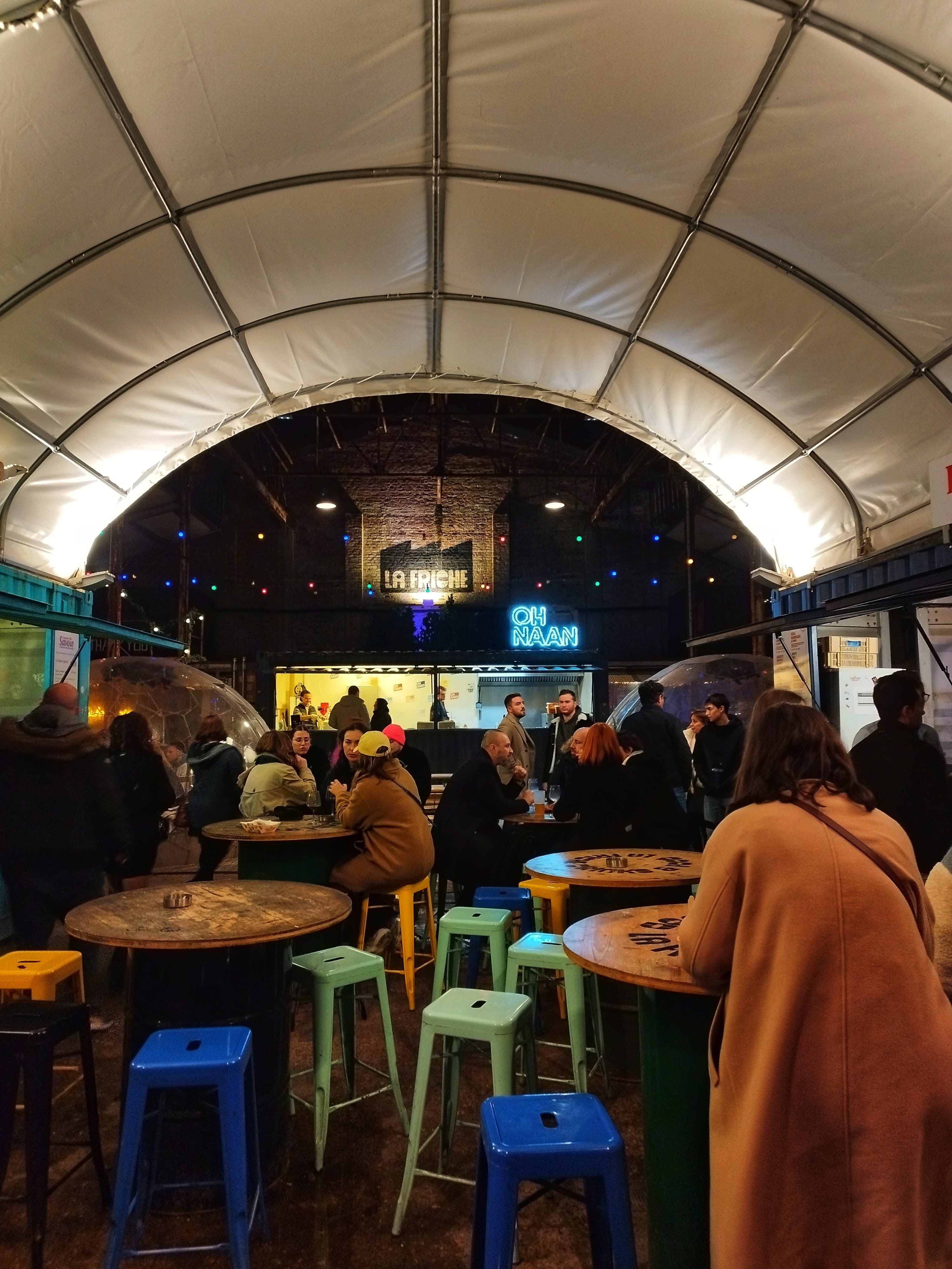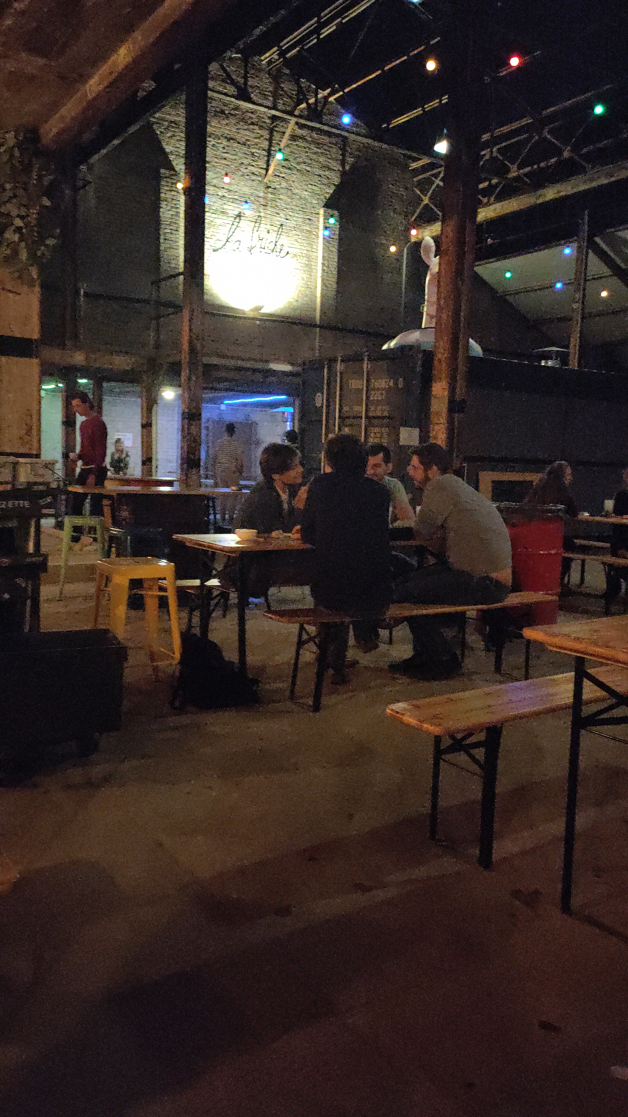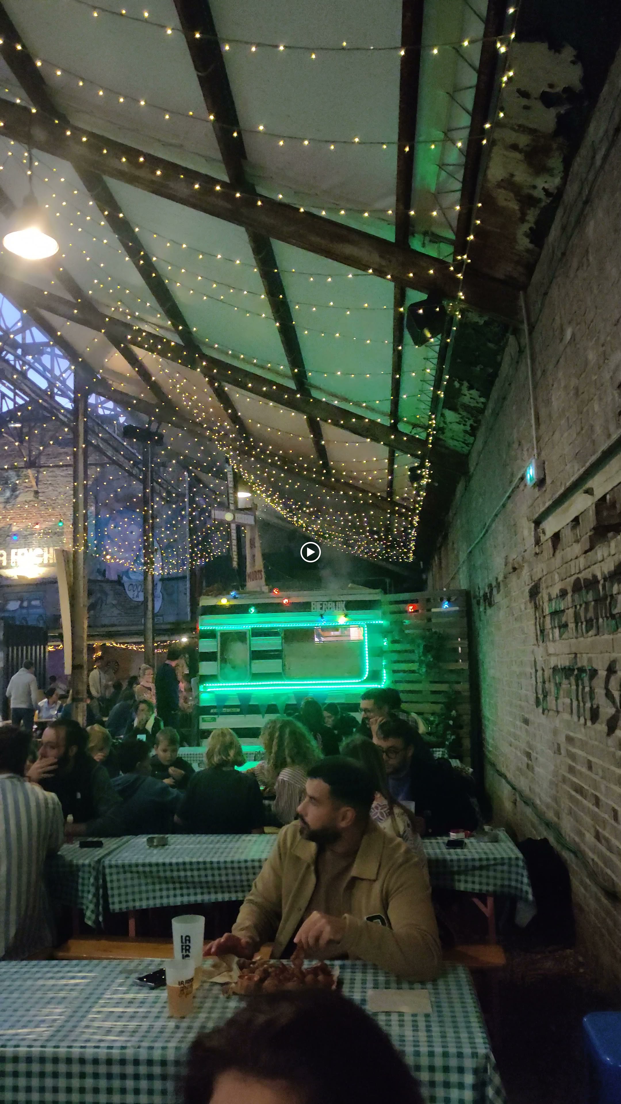 Très convivial, juste galère d’avoir une table à l’intérieur mais normal c’est une ancienne usine. Les stands de nourriture sont nickel!