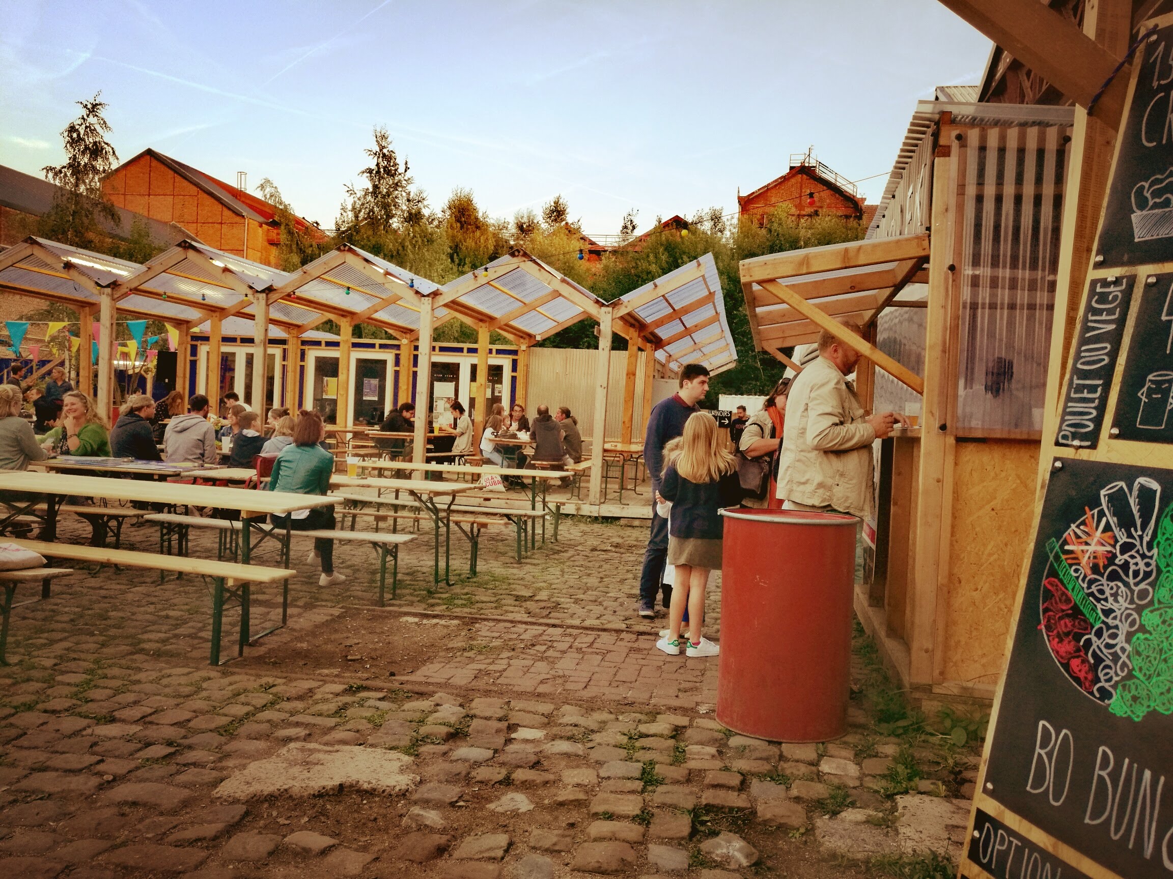 Aujourd'hui : Toujours aussi sympa pour bouger un peu sur la métropole. En semaine vers 20h il y avait un peu de tout: des jeunes, des trentenaires, des familles, des vieux qui viennent boire un coup. C'est ça qu'on aime à la friche! Il y a 2 ans (emplacement différent) : Ambiance tranquille