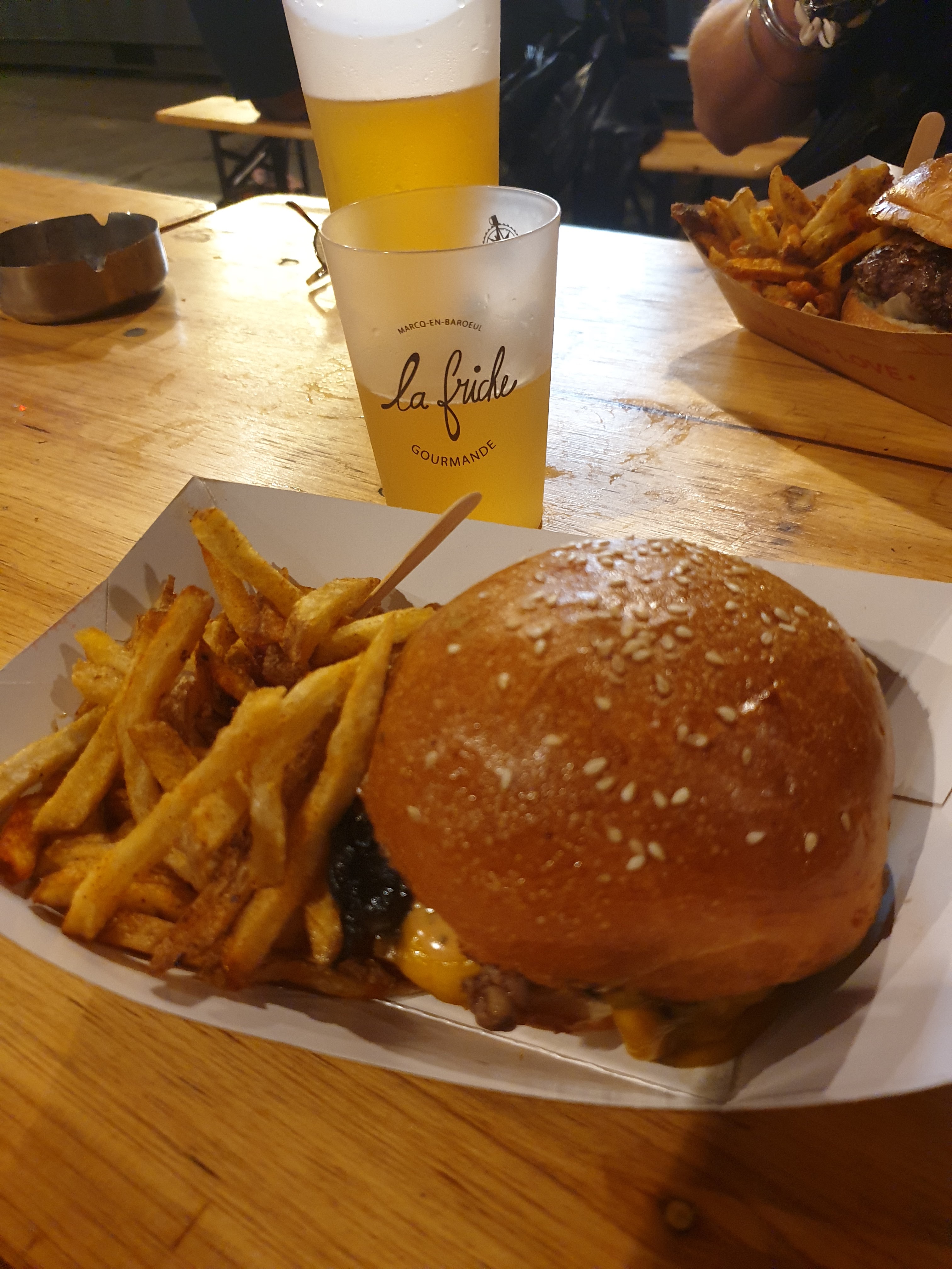 Bien moins convivial que l’ancienne friche ! Très très bruyant Bar inorganisé, 1 personne en caisse pour 4 serveurs qui attendent … et une queue d’attente super longue bref ça donne pas envie d e boire une autre verre ! les burgers sont tjs aussi bons !!!