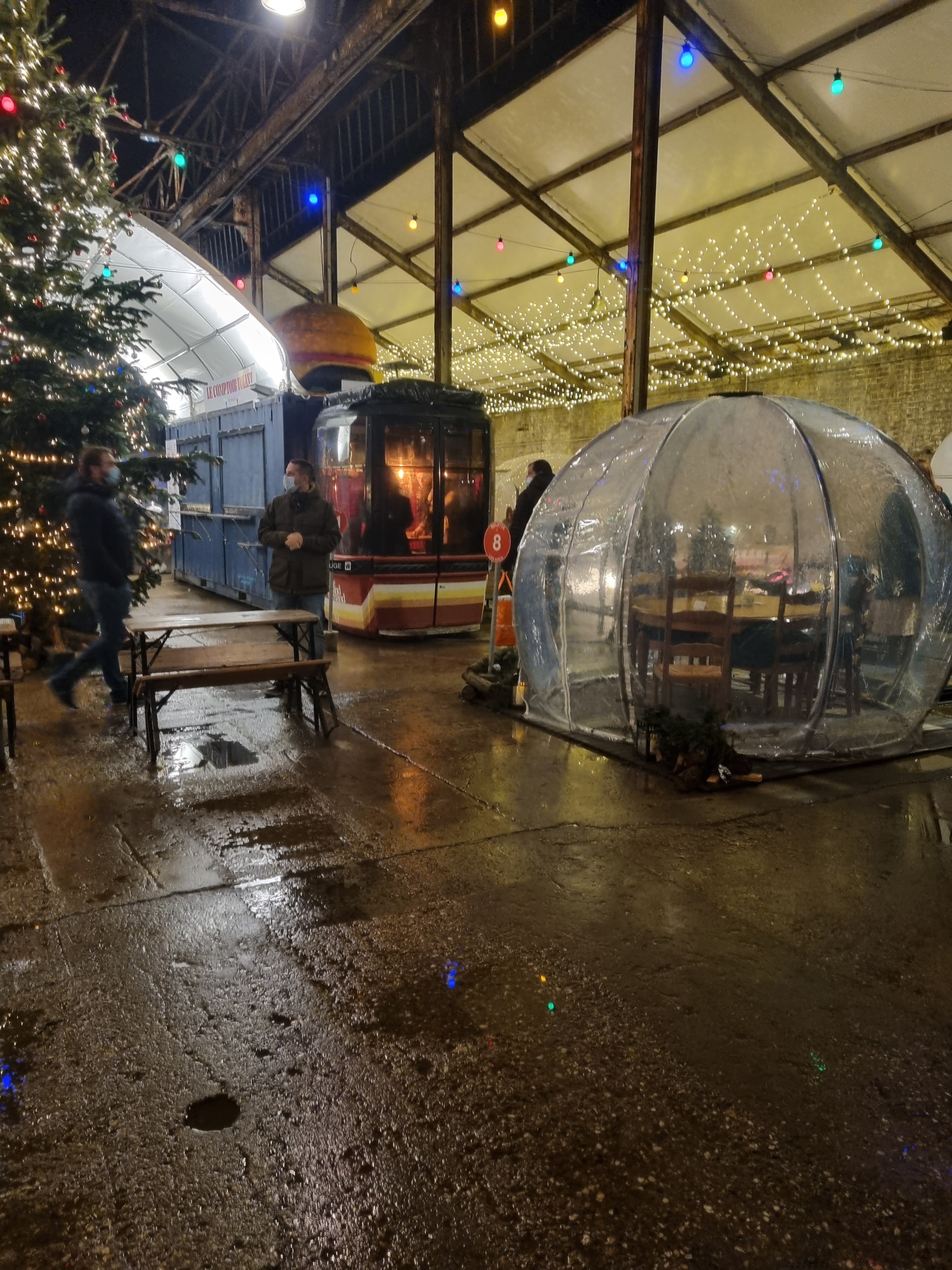 Lieu atypique déjeuner de la street food ou une raclette dans des igloo ou des télécabines expérience agréable. Un petit bémol la bulle est réservée pour 2h et l application permettant de commander en panne nous a obligé à faire plusieurs queues et donc nous n avons pas pu profiter pleinement.