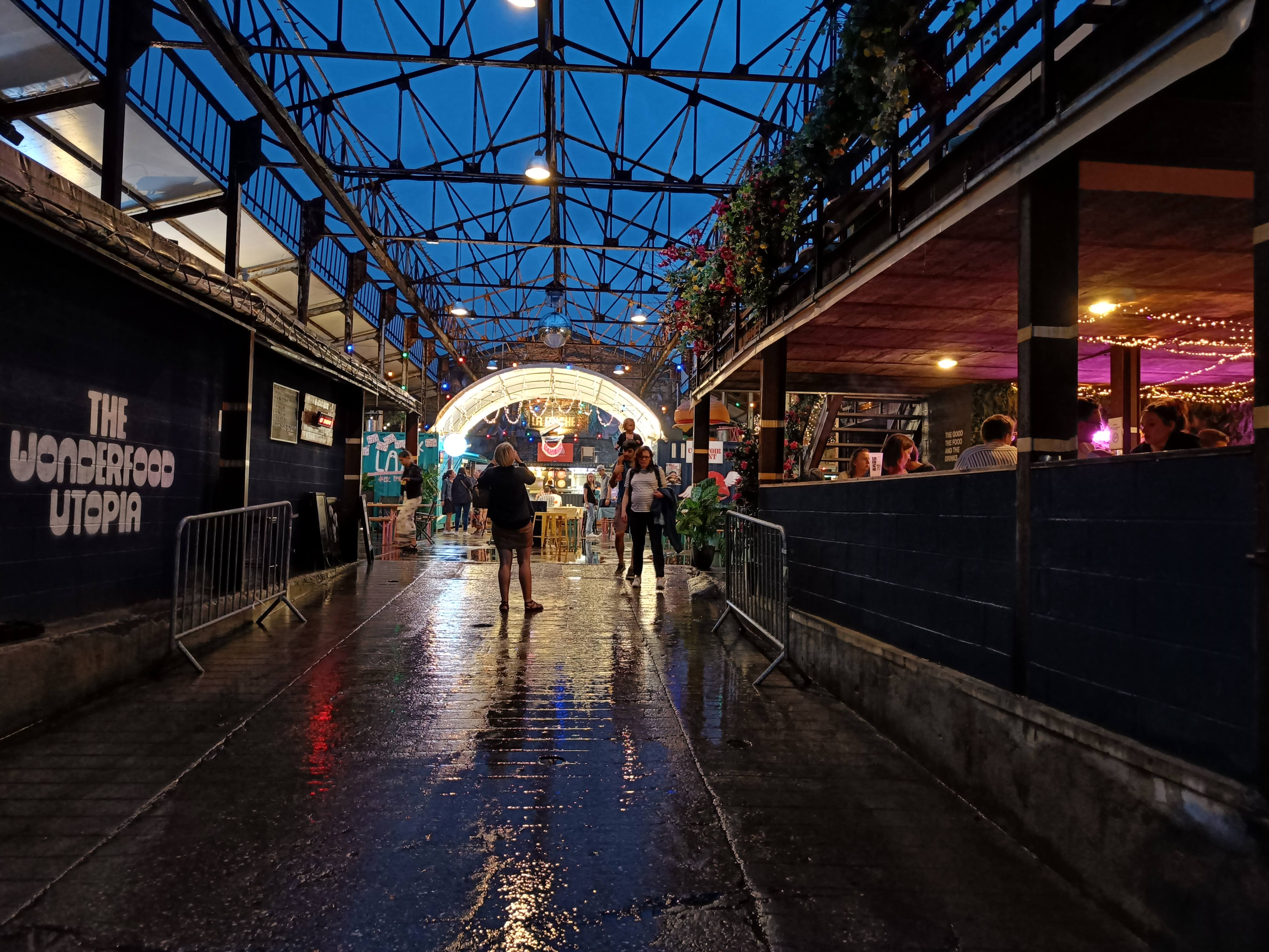 Un lieu convivial avec quatre possibilités pour manger et un bar. Les restos ferment plus tôt que le bar (22h). La musique est en sourdine, l'éclairage discret et les gens cool. Un lieu sympa pour passer du temps entre amis