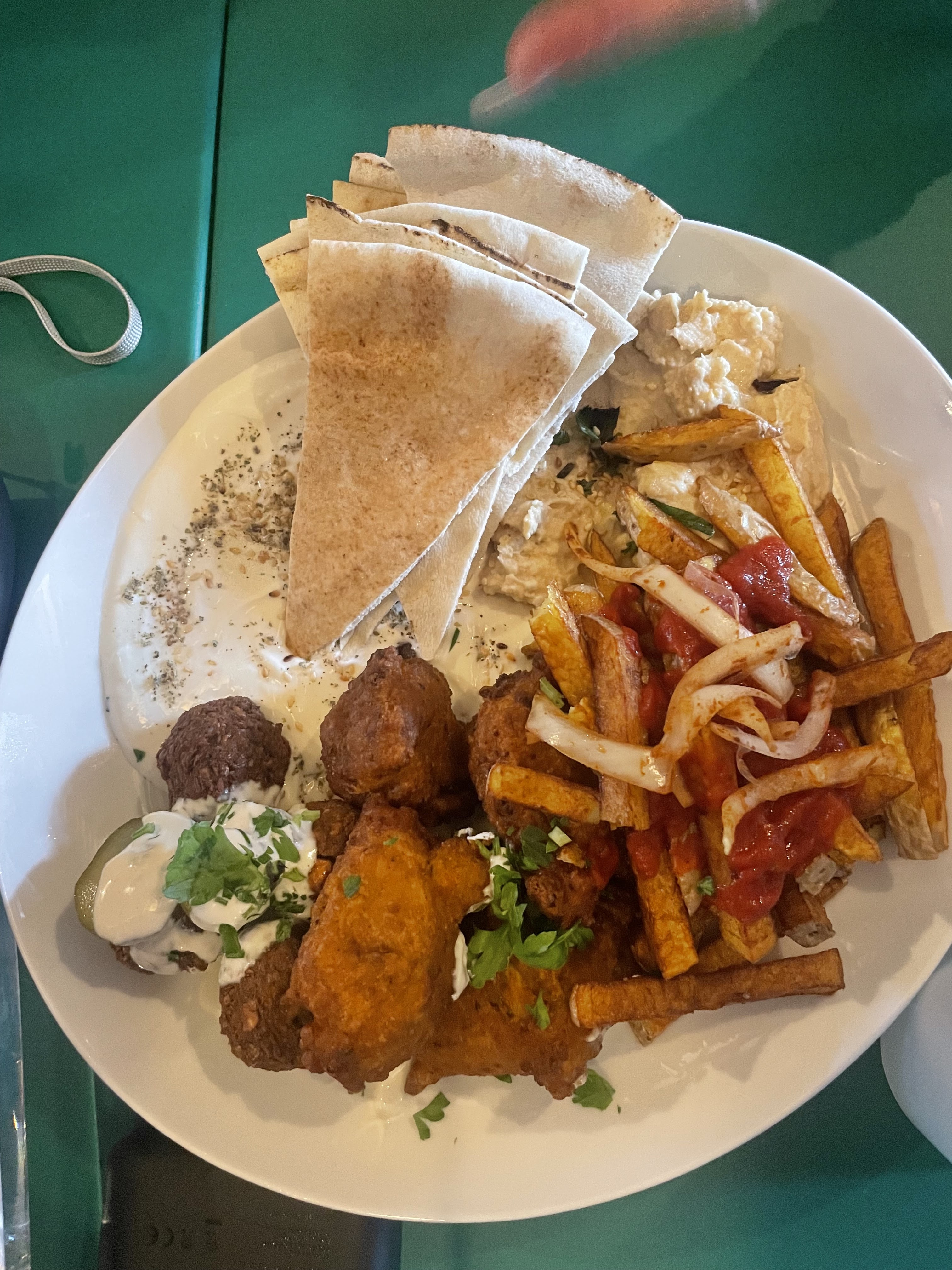 1ère visite. Ce lieu est très sympa. On peut y manger, boire, s'amuser, se reposer, discuter... bref, une adresse à connaître sans attendre. On peut y manger des burgers, Thaï, des Naans... et y boire toutes sortes de cocktails, bières... Si le cœur vous en dit, il y a aussi des fléchettes, des terrains de pétanque... J'y retournerai très vite c'est clair !