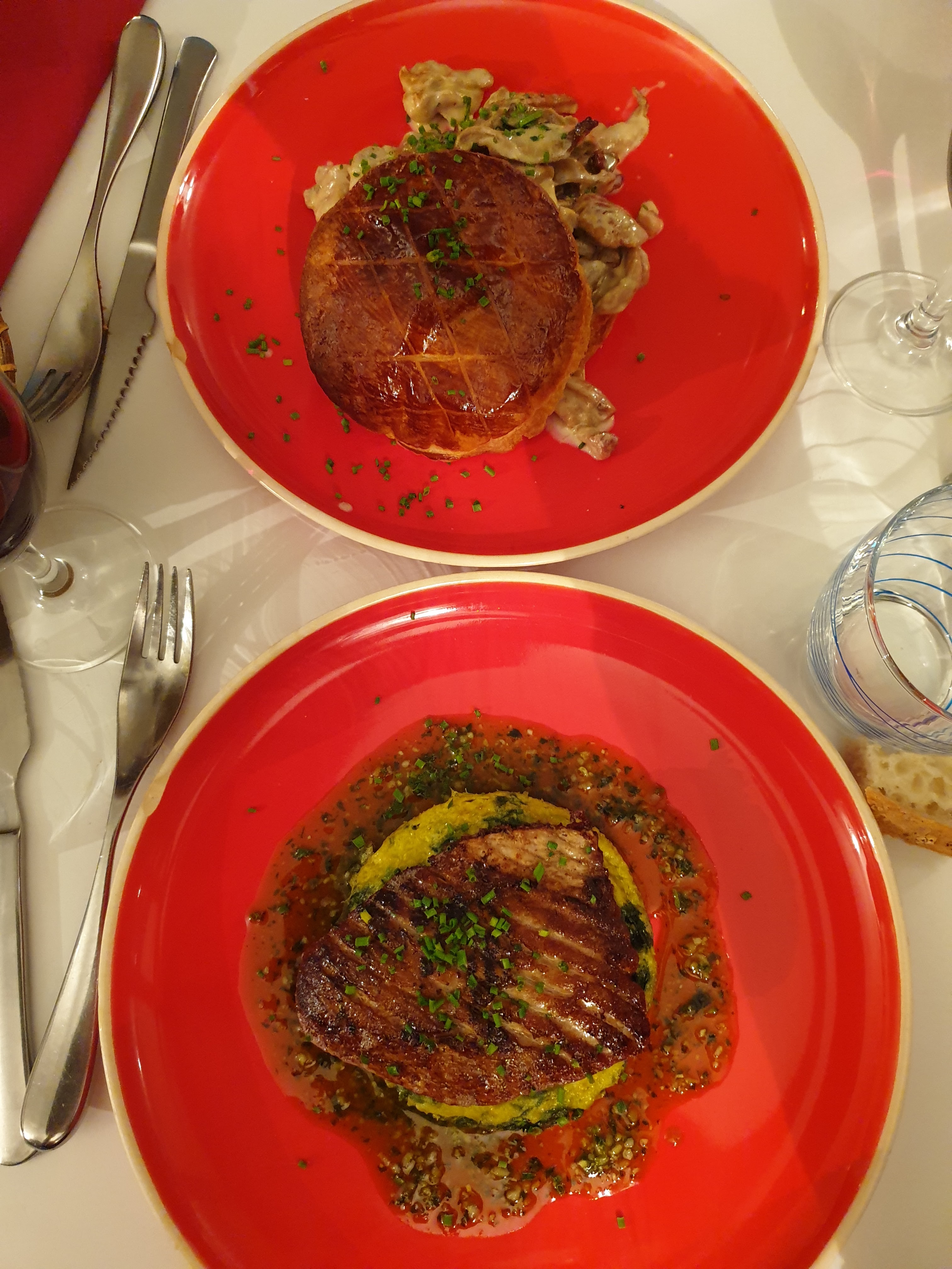 Plats fins et délicieux, desserts délicieux, bon vin. 87 euros à deux avec apéritif, entrée, plats et desserts : plus que raisonnable