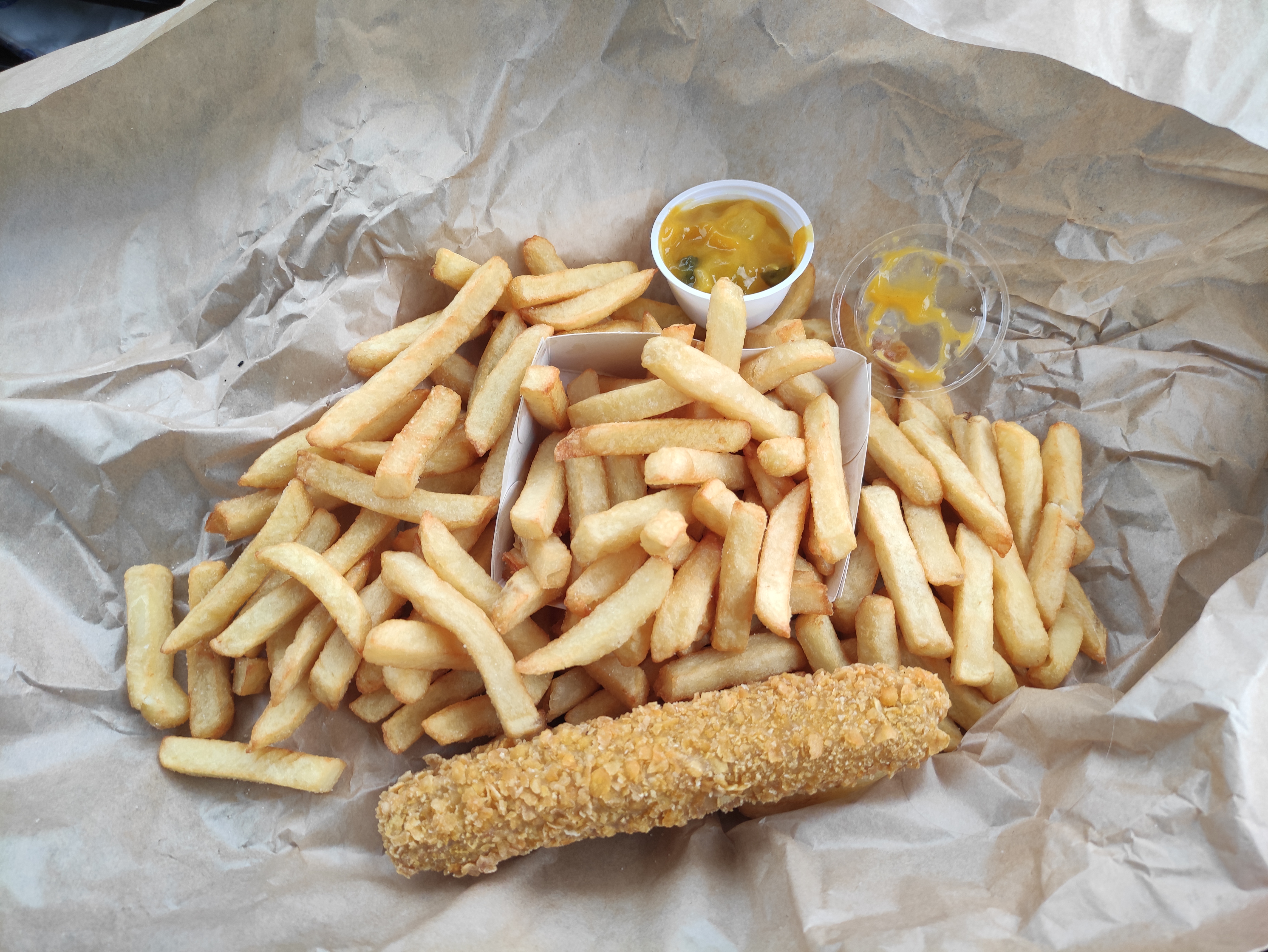 Je m'attendais a beaucoup mieux de la part de cette friterie. Nous sommes sur une fourchette haute pour le prix d'une grande frite mais pour autant j'ai déjà goûté beaucoup mieux. Je ne considère pas que ce soit la meilleure friterie de France