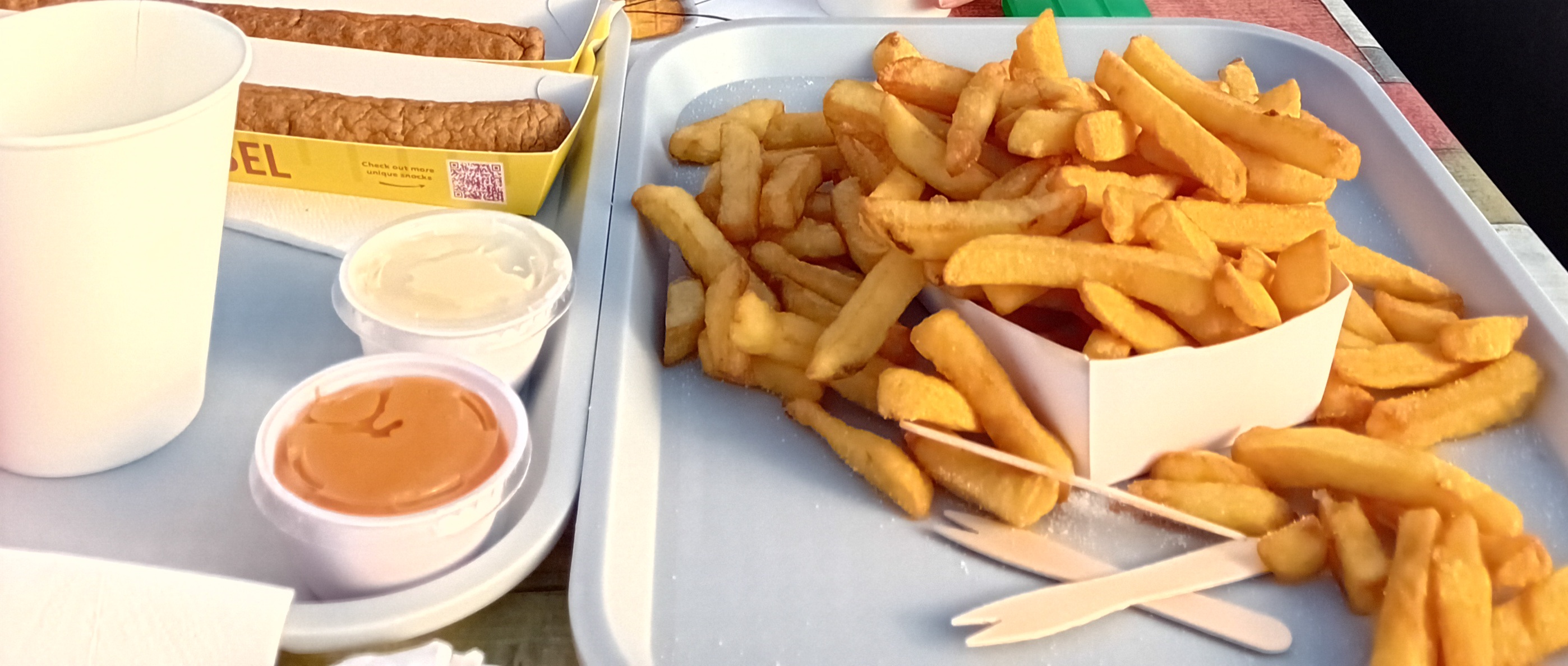 De passage à un magasin de meubles nous nous sommes arrêtés pour manger. Une vraie frite du nord fraîche et en quantité ! Une belle assiette garnie et le tout servi dans la bonne humeur ! On reviendra !